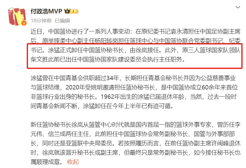 王芳离任!媒体曝光中国篮协高层变动,张镇麟母亲被调离 中国篮协最近发生了高层变动