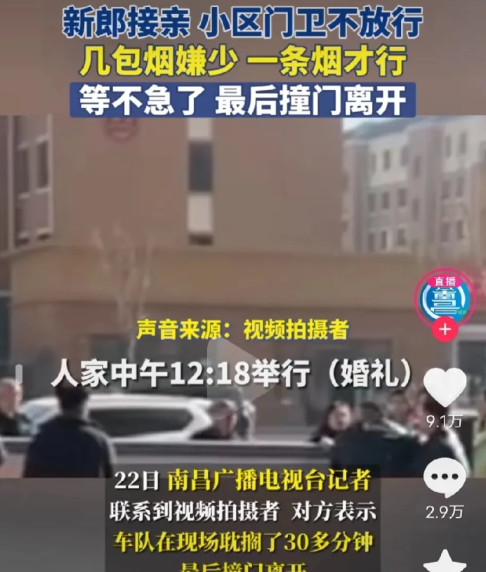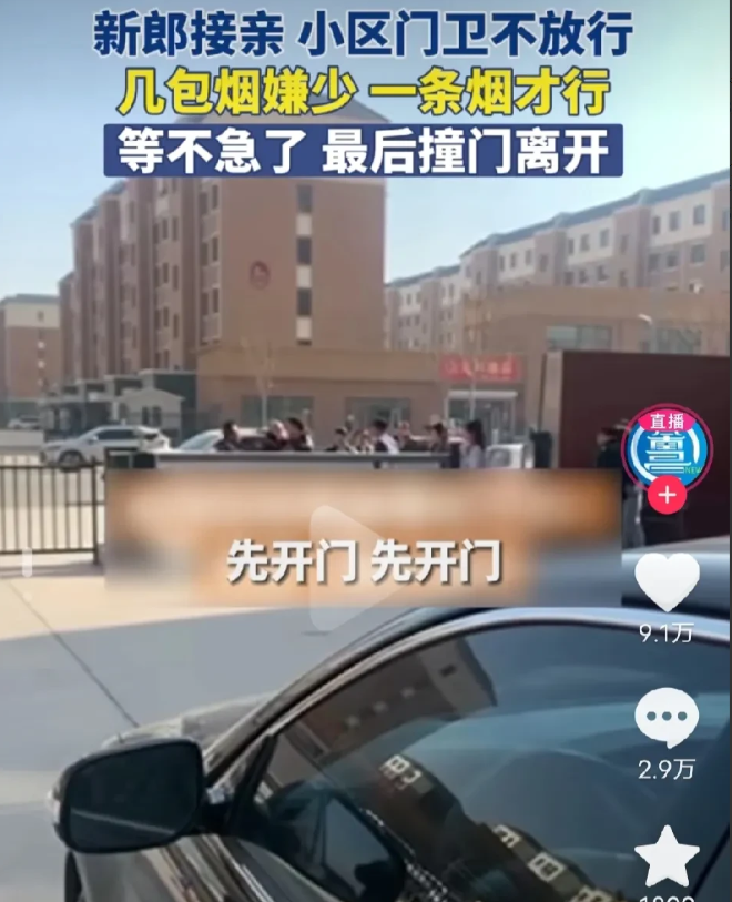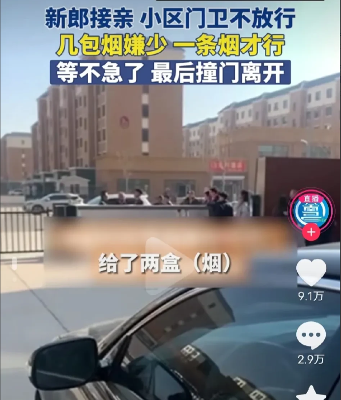 无法无天!婚车接新娘出小区,被保安拦了下来,说什么也不让走,新郎无奈给了两盒烟,保安张嘴就要一条,还必须是华子才行。