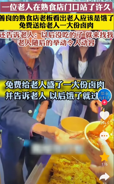 他跟老人说:“大爷,这卤肉你拿回去吃,下次饿了,直接过来。”