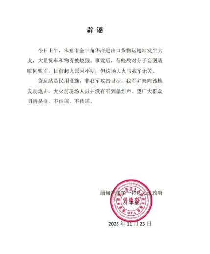 中缅边境中方出口货物被烧,谁干的? 11月25日。据凤凰网报道,当地时间23日,