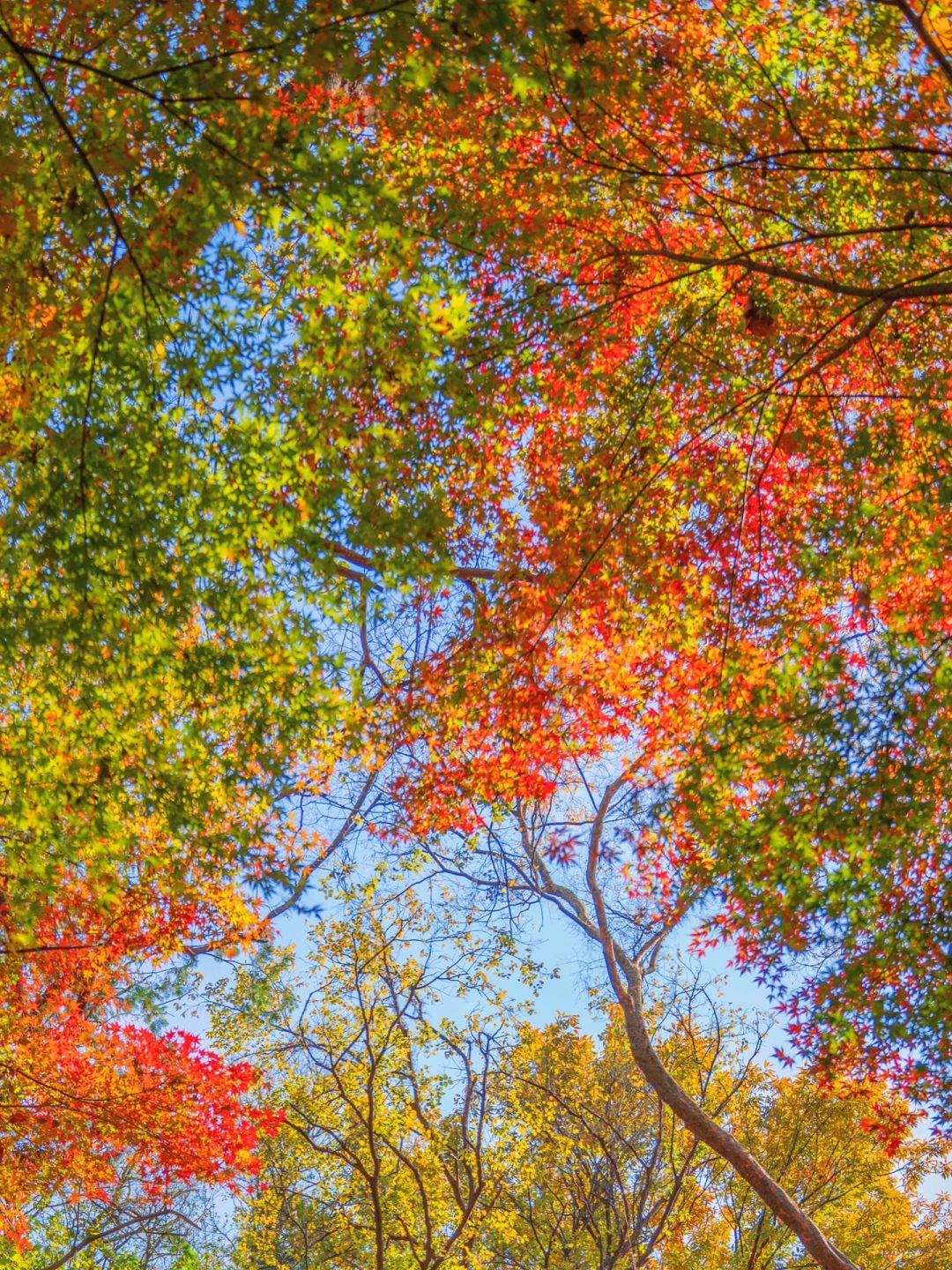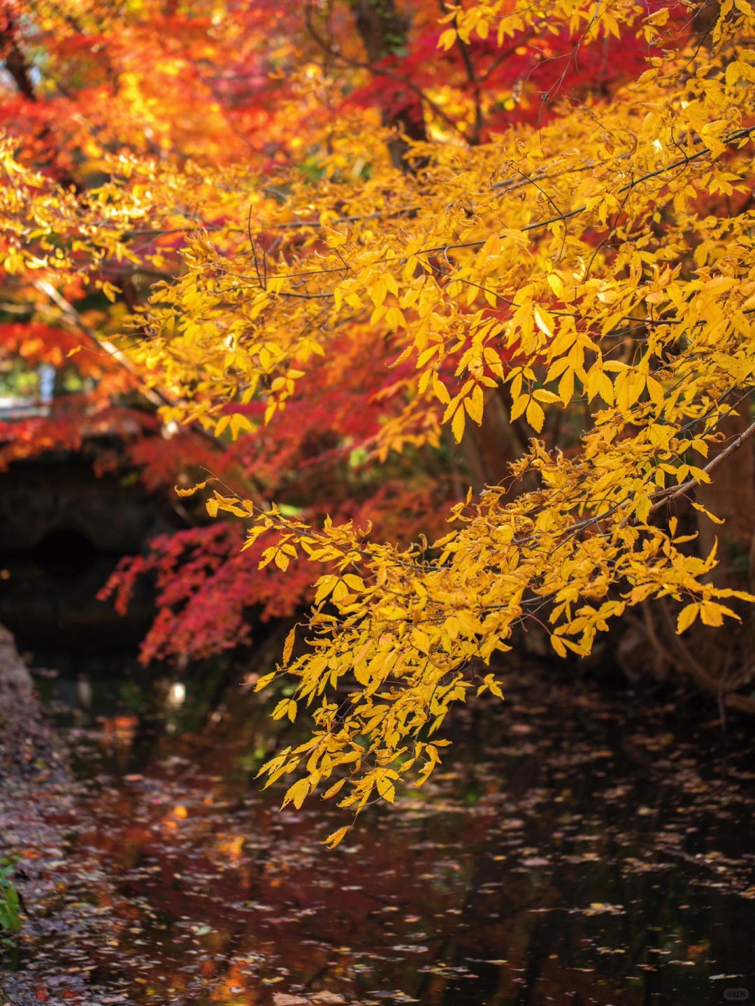 有人说枫叶全红zui美,但我更爱秋叶现在的斑斓色彩~