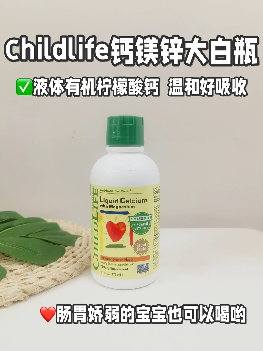 同时,它是液体有机柠檬酸钙,肠胃娇弱的宝宝👧🏻也可以喝,味道是香橙酸奶口感,醇厚绵密,是孩子们喜欢的~