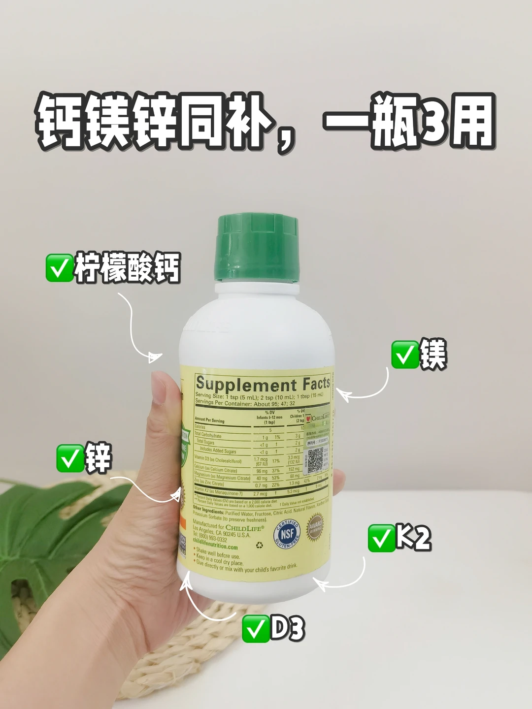 我家宝有在喝Childlife钙镁锌大白瓶,性价比挺高的,在营养好的同时还做到了好吸收。钙镁锌同补,一瓶3⃣️用,更添加了D3➕K2,多种营养元素,助力宝宝成长~