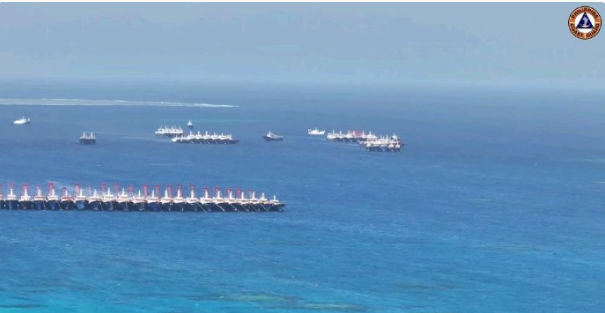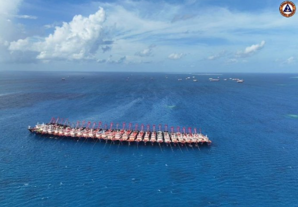 中国大批船只聚集南海牛轭礁海域附近。12月2日,菲律宾海警出动了侦察机,两艘海警