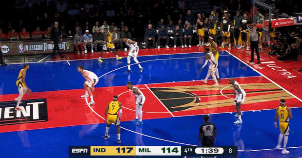 里夫斯真大心脏啊,三分线外突施冷箭杀死比赛!