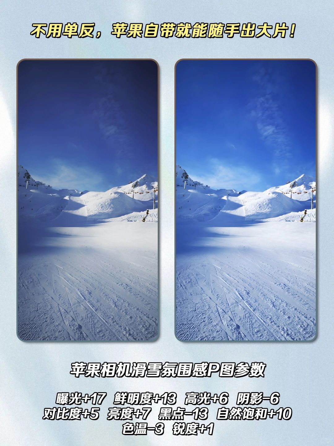 苹果相机滑雪氛围感P图参数:
