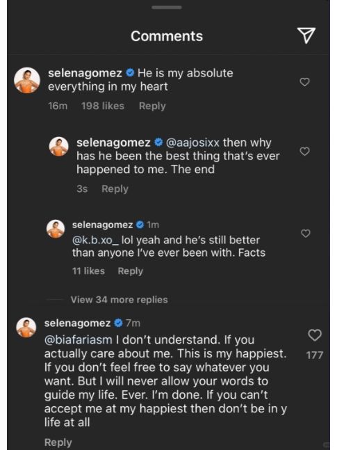 ig上有粉丝不满这段恋情,赛琳娜则回复: