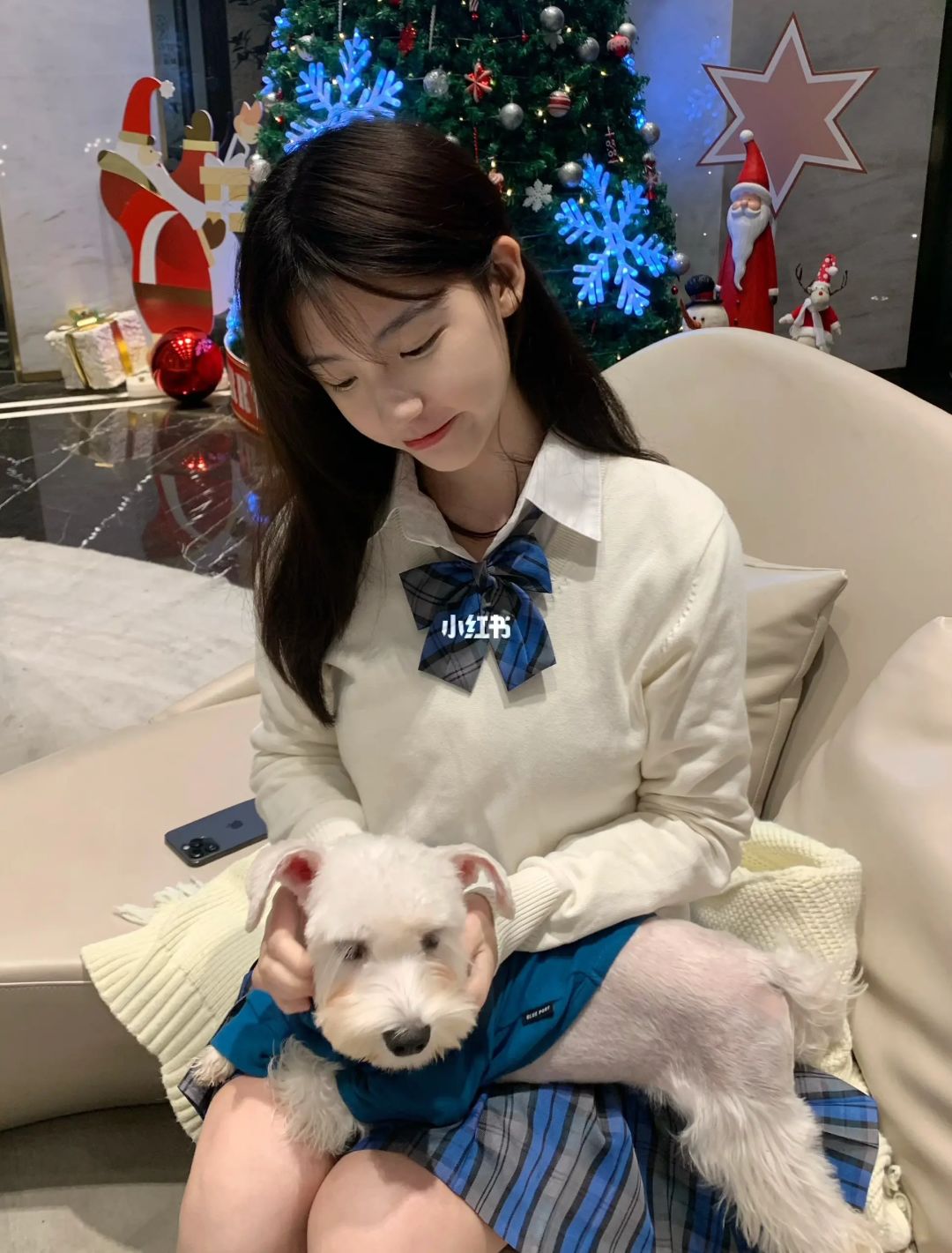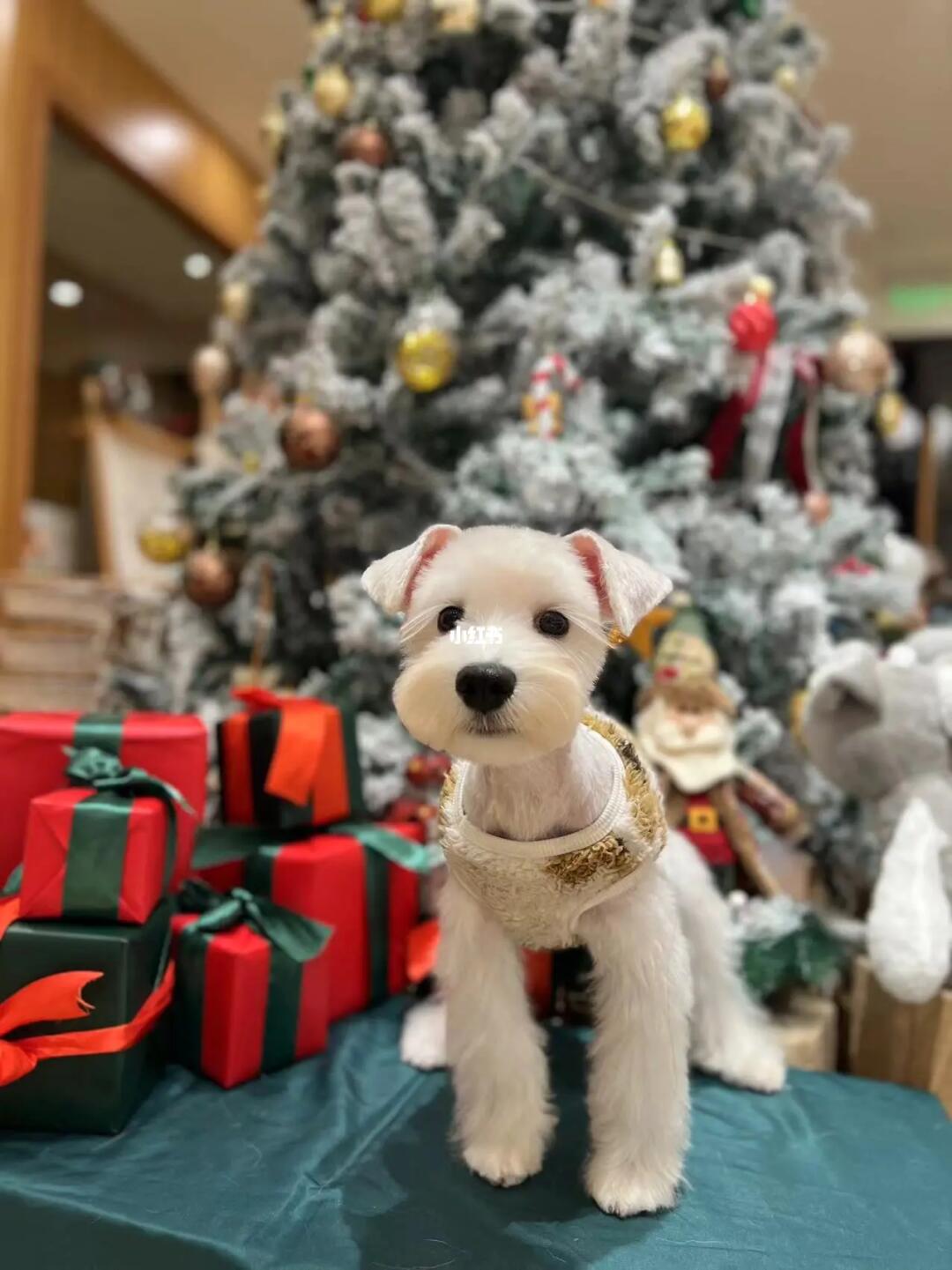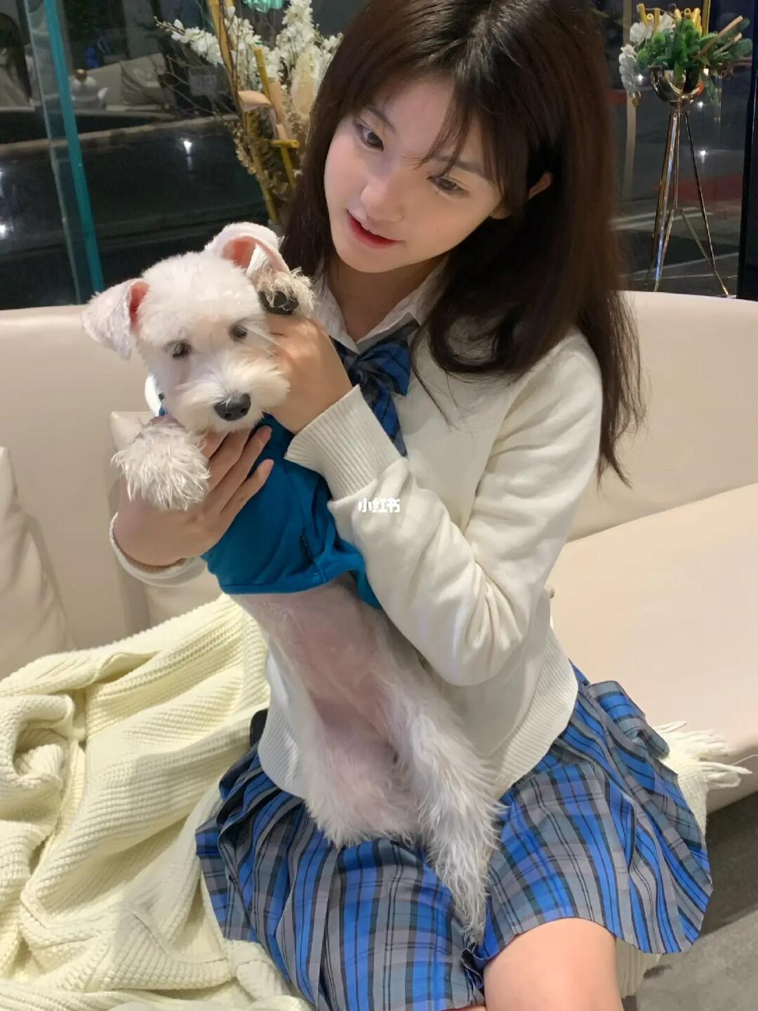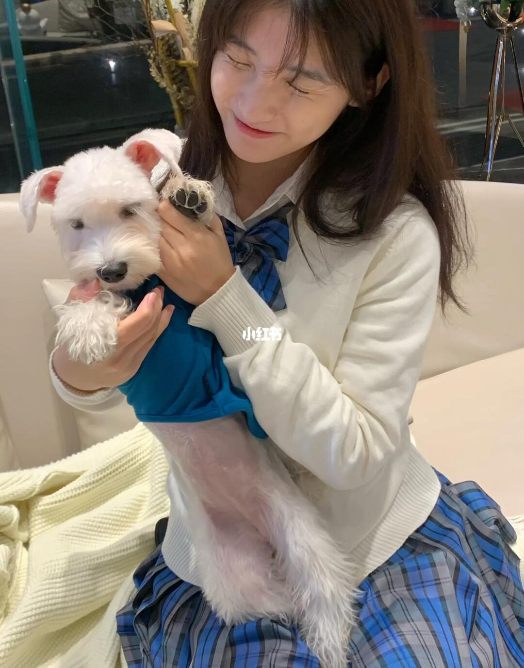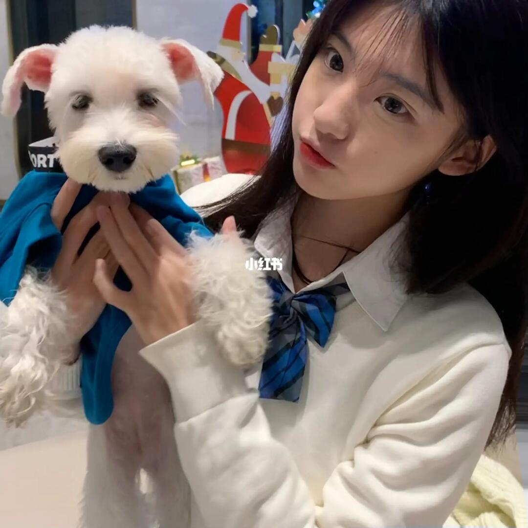 一直没有和我的狗狗合照 美完容和它合照啦 可爱的白色雪纳瑞