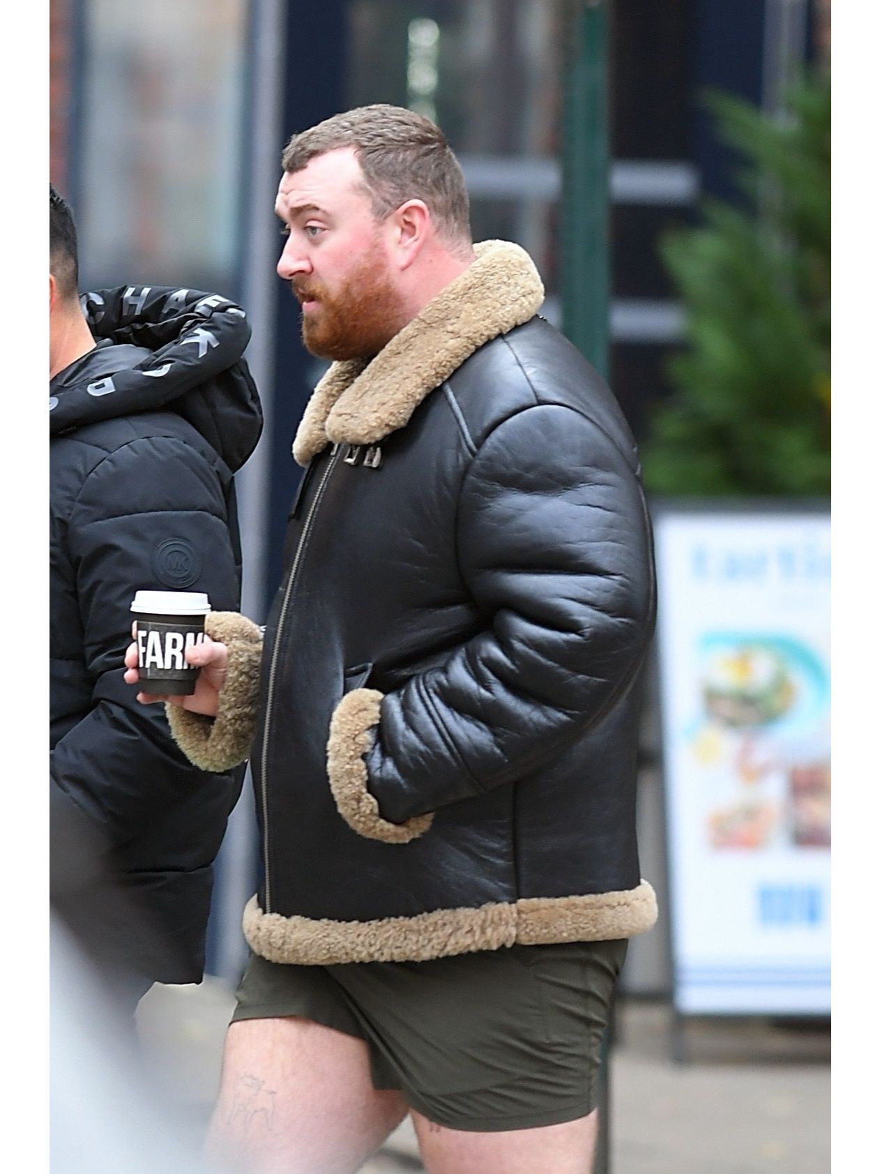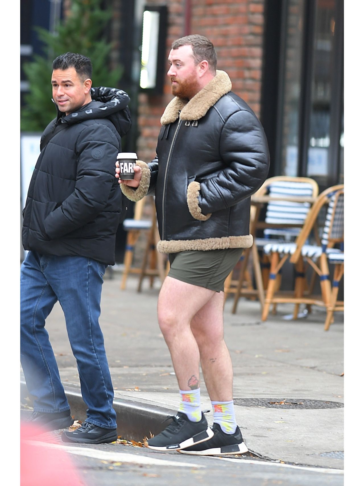SamSmith冬日穿短裤外出,露大腿性感撩人