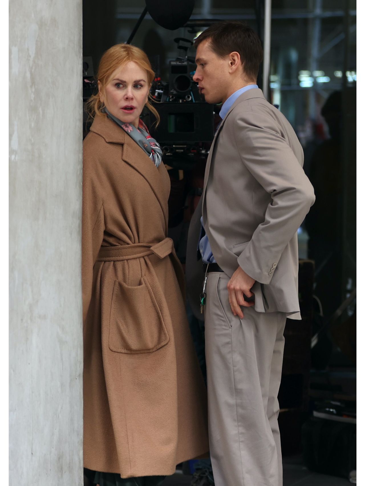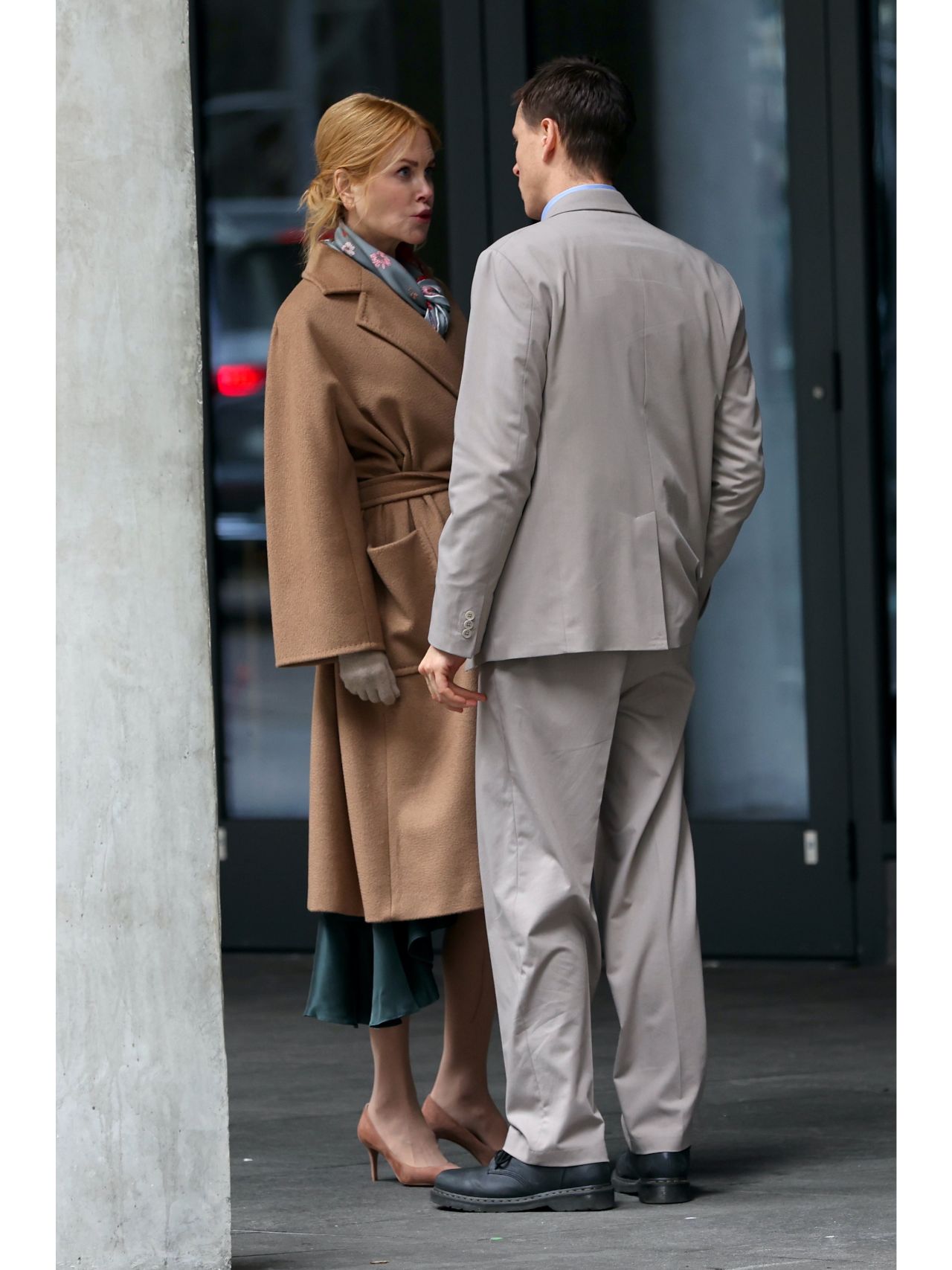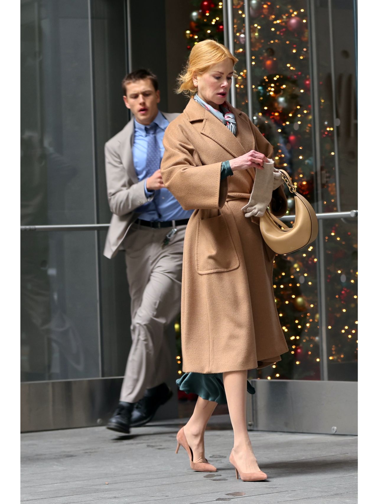 当地时间12月11日,「澳洲影后」妮可·基德曼(Nicole Kidman)和「英国新晋鲜肉小生」哈里斯·迪金森(Harris Dickinson)在曼哈顿办公大楼外拍摄新片《宝贝女孩(暂译)》。