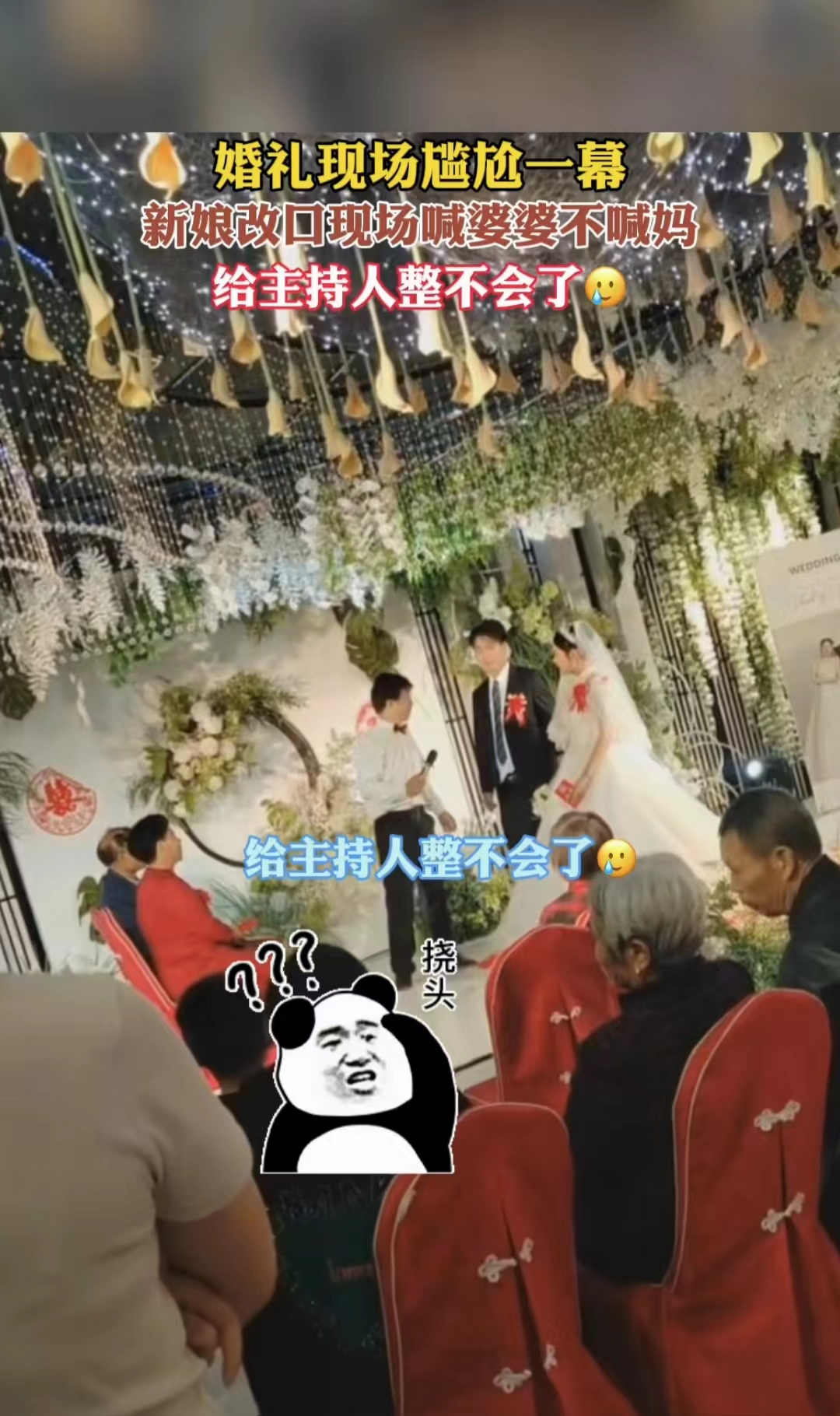 然而,司仪将话筒再次伸向新娘时,她又重复了一遍:“婆婆!”