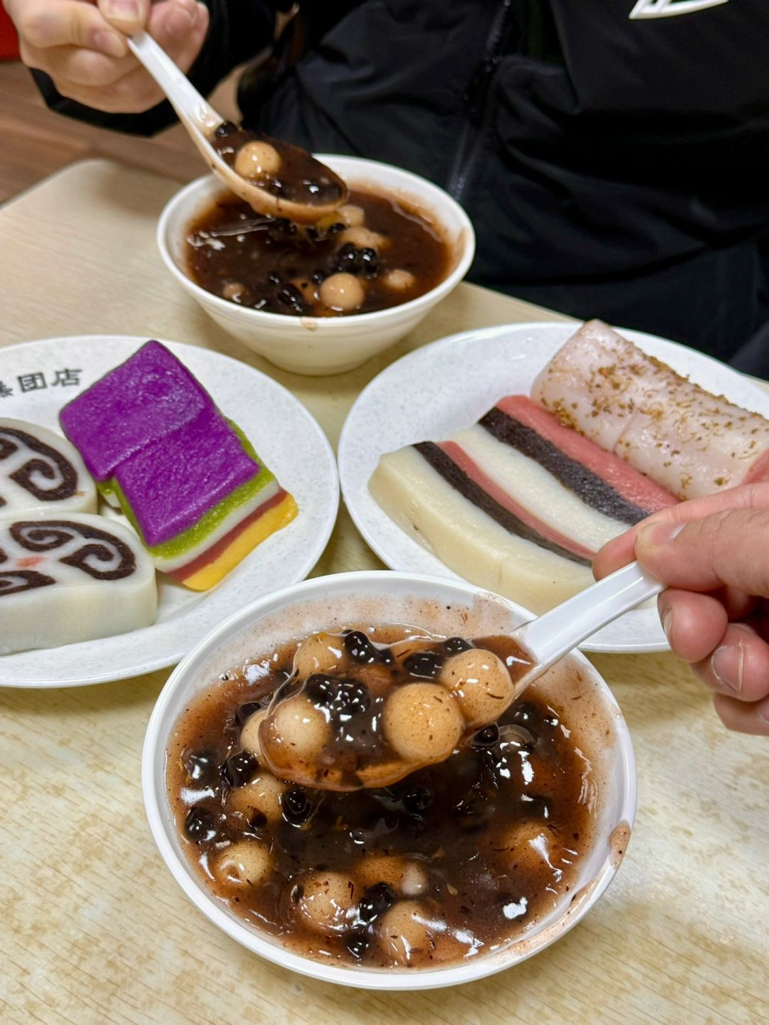 👉🏻尤其是很多南京土著从小吃到大的[莲湖糕团店],也是来夫子庙景区旅游必打卡的特色小吃之一~他家的莲子赤豆元宵蛮好吃,还有牛肉锅贴、三色糕等等也都很好吃~冬天来一碗蛮治愈~
