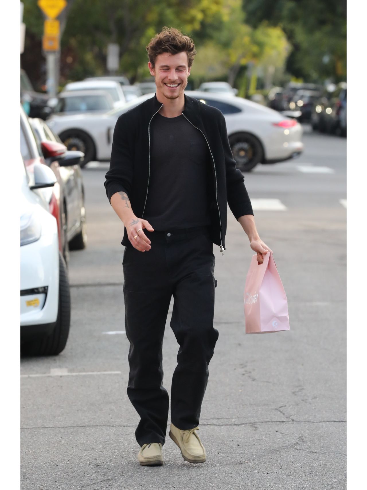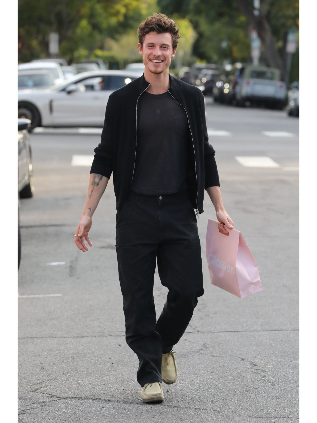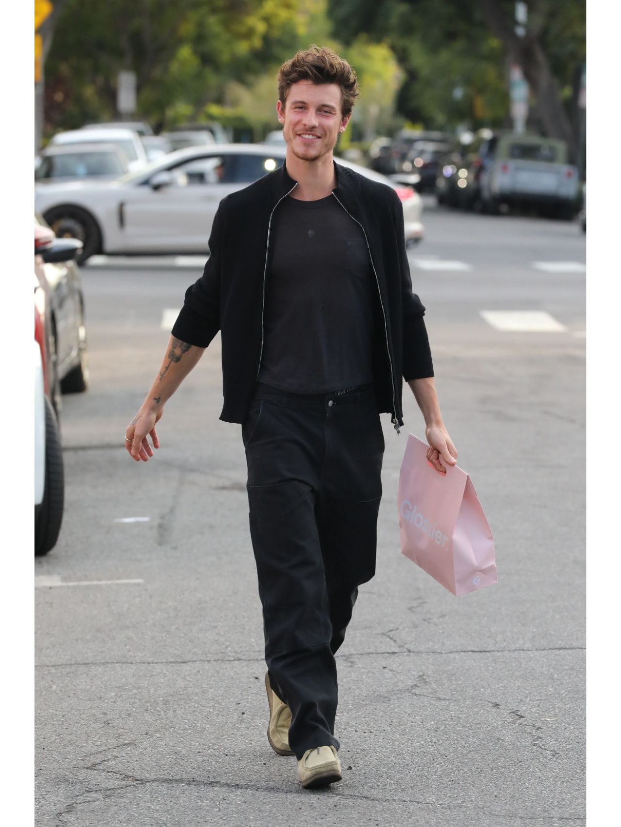 昨天Shawn Mendes在洛杉矶购物,从知名美妆品牌Glossier旗舰店里买了东西,萌德领着一个粉红色的购物袋来到停车场,一路上喜笑颜开,心花怒放。
