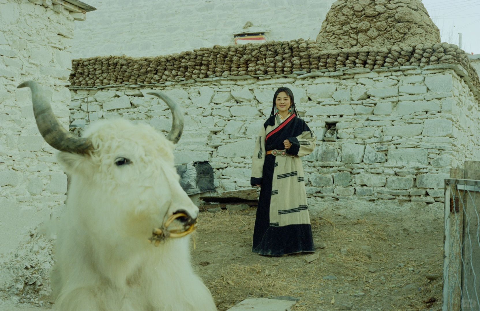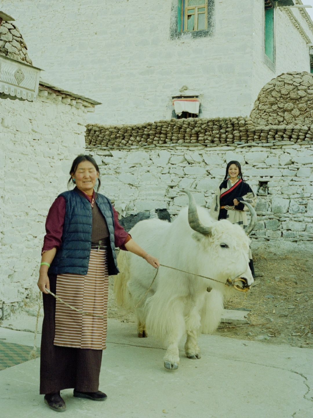 还遇见阿妈院子里的白色牦牛,喂它吃了大萝卜。