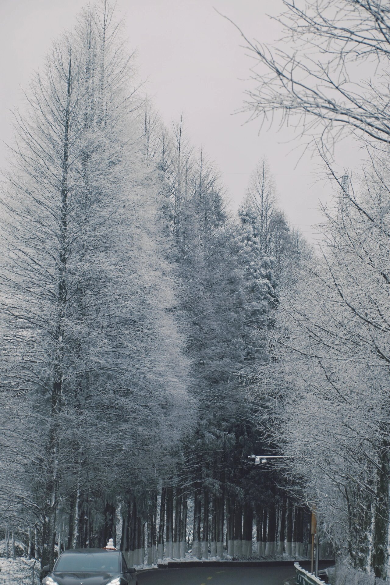 早上起来刷到山上下雪了,怎么能错过重庆的初雪呢,立马找了离主城近的地方拍雪。这场雪下得挺大,山上都有积雪了,拍照完全够了。