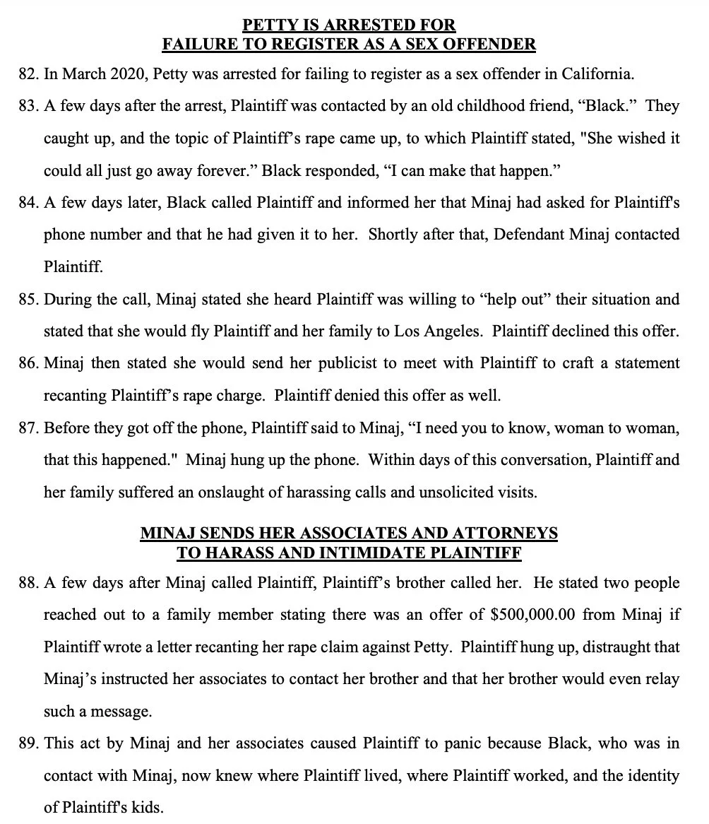 根据最新释出的文件,Nicki Minaj 曾试图花50万美元给被她老公Kenneth Petty强奸的受害女性Jennifer Hough当作封口费,要求对方撤回对麻辣鸡老公的指控。
