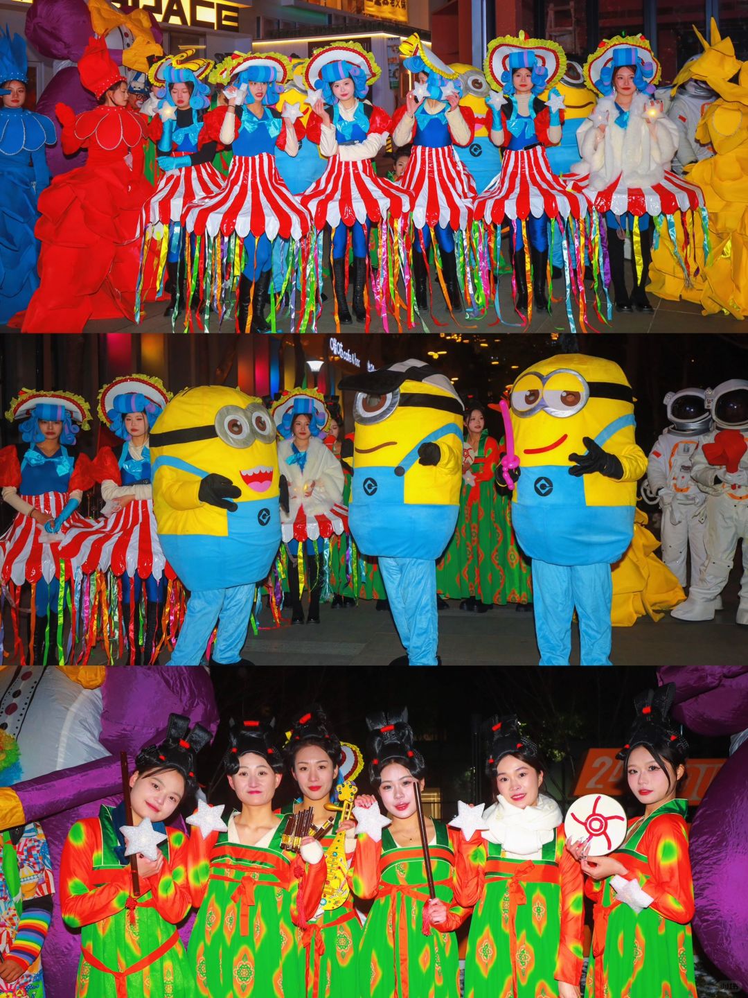 这里24小时在线,吃喝玩乐这里全给包圆了~跨年当天从下午1点开始,非遗展演、复古朋克艺术巡游和乐队live等等各类活动轮番上演,在冰雪灯光秀中倒计时迎接新年~