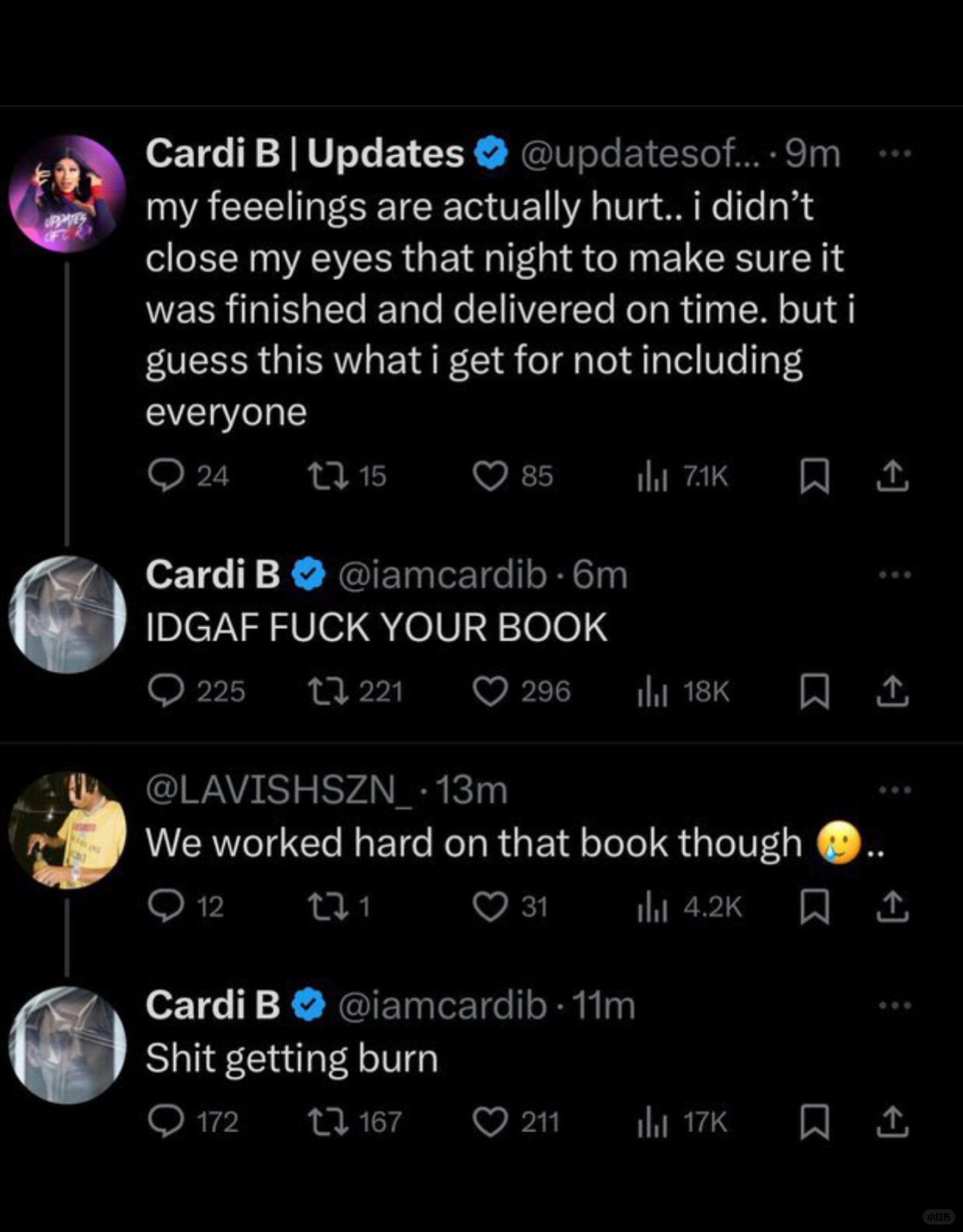 Cardi B还回复:“我他🐎的才不关心你他🐎☀B的书!”