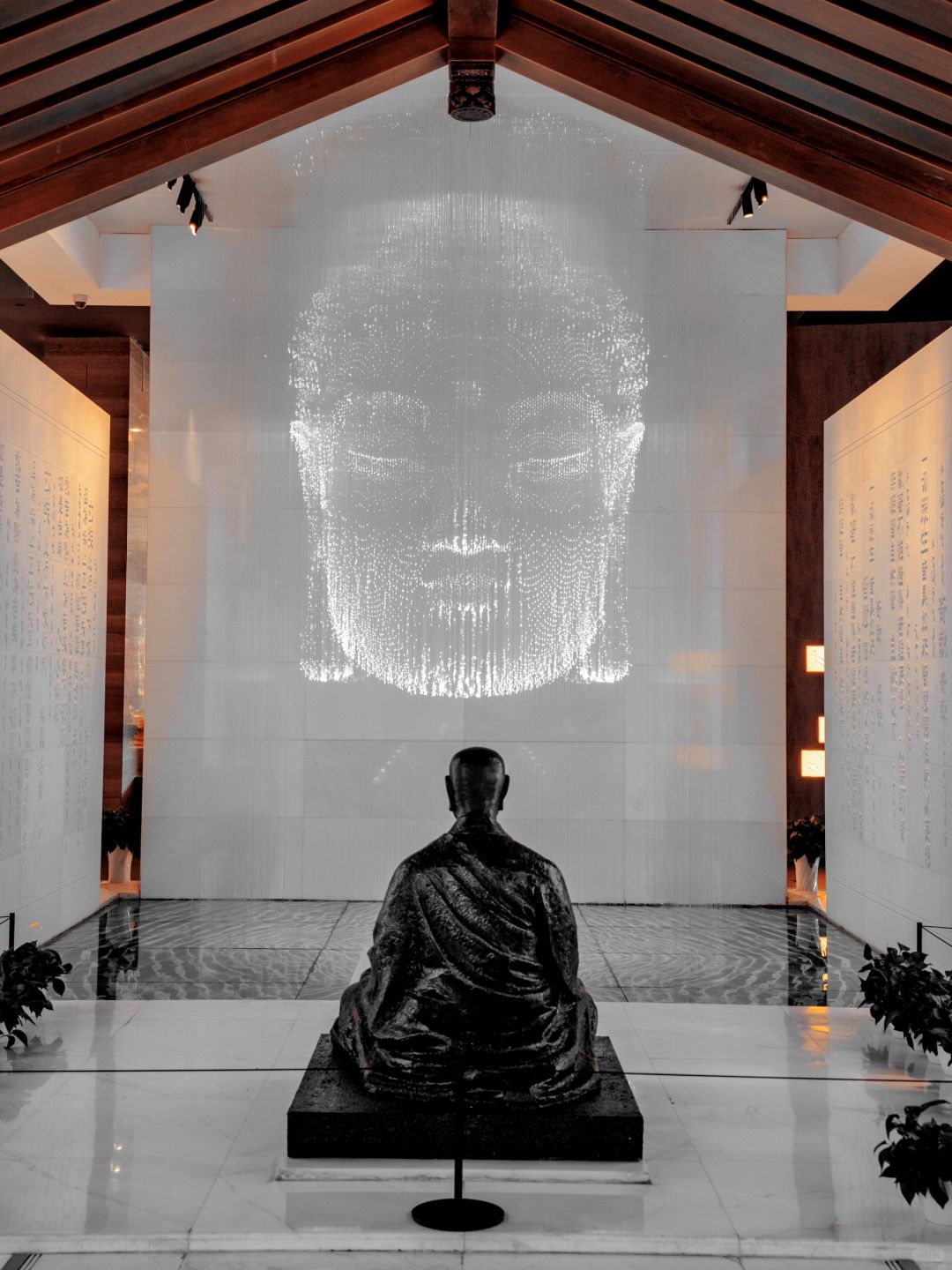 馆内的[千年对望]一步一生莲,玄 奘 法 师与佛头像是一场穿越时空的对望,看到的那一刻内心是无比崇敬的,《风起洛阳》水晶佛头的灵感就来源于此~