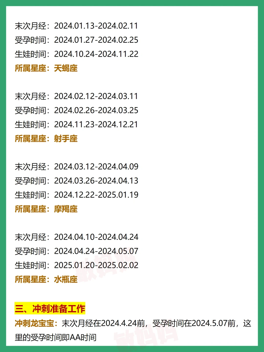 也就是说,末次月经在2024.04.24前,受孕时间在2024.05.07前的,大部分都能赶上龙宝宝~家人们,最后5次机会,抓紧八