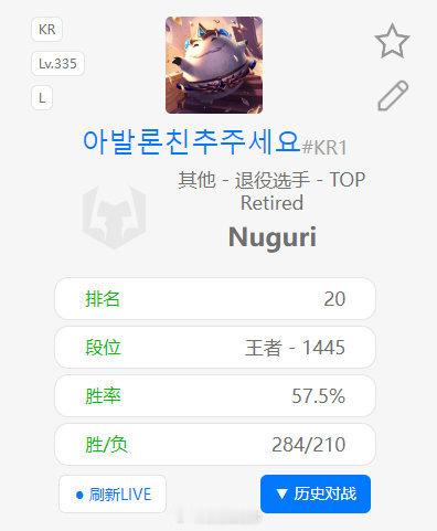 Nuguri韩服排名前二十#电竞星联盟##英雄联盟[超话]#