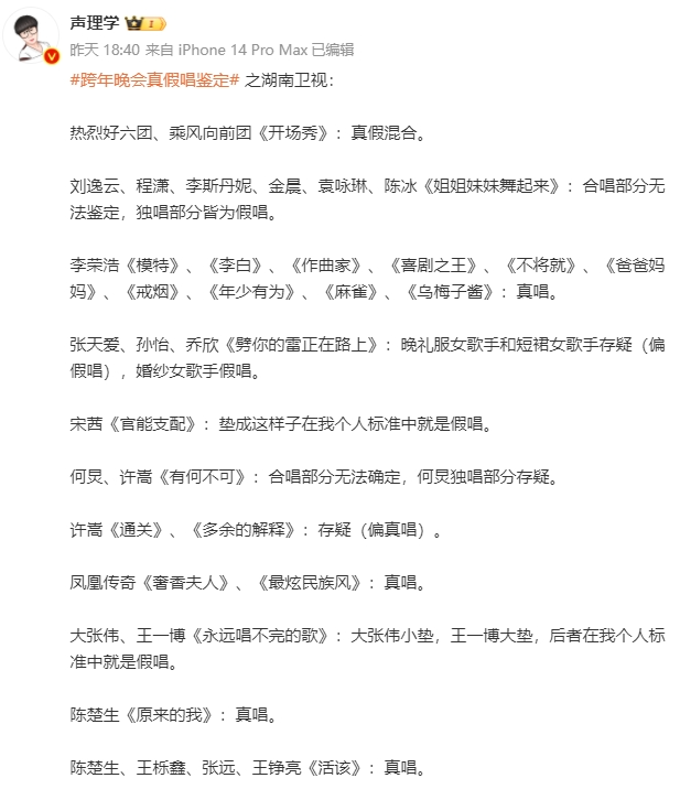 跨年晚会结束后,新一轮的打假又开始了...很多人都在质疑:到底谁假唱了?随后,网上就流传出了一份假唱名单。但不管是演员还是歌手,既然上了舞台,就必须对观众负责。