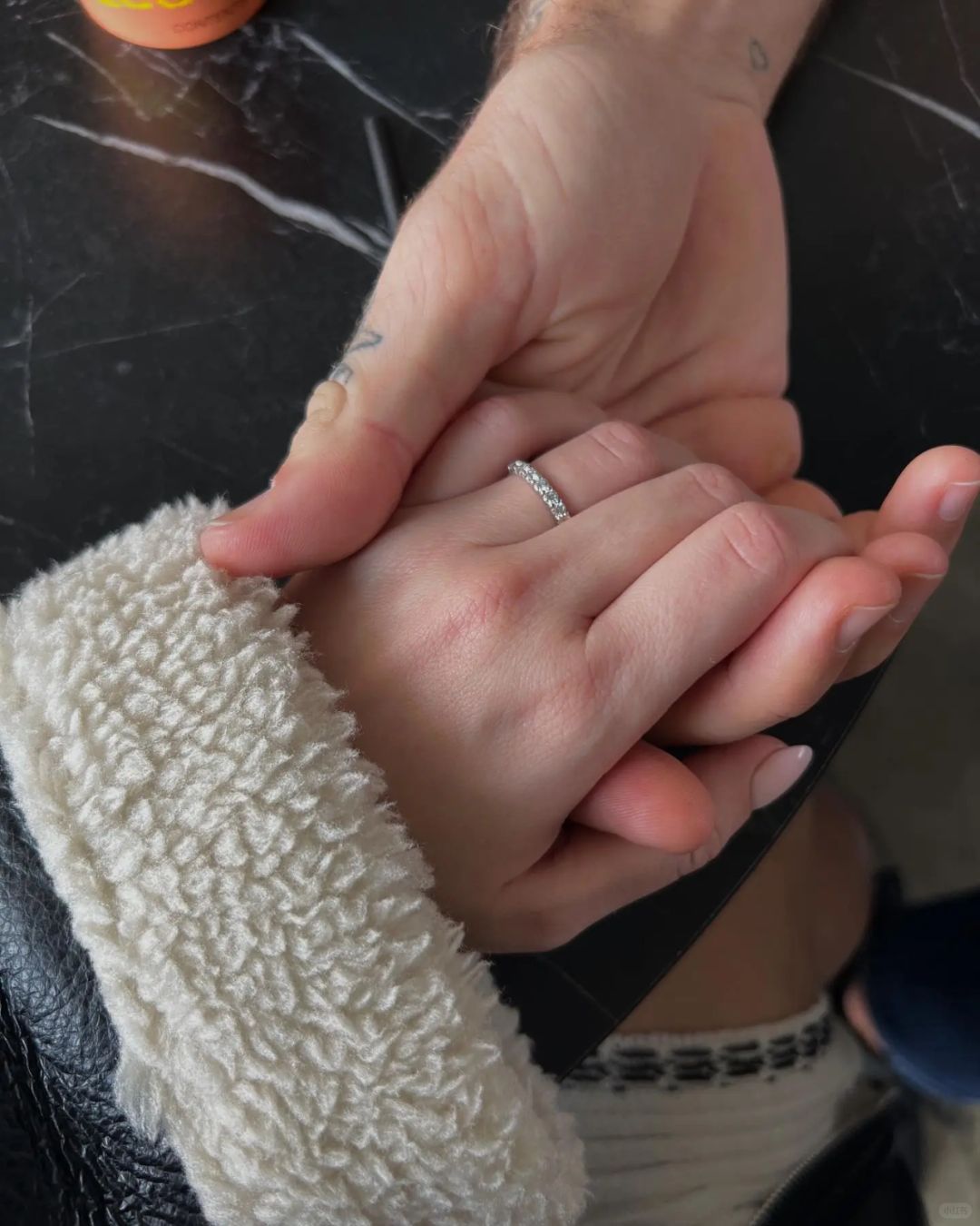 2023年10月,Marina Gris曾发布一张她左手无名指上戴着钻石戒指的照片,照片里疑似Armie Hammer的手正在握着她的手。当时被网友认定他们已经订婚。