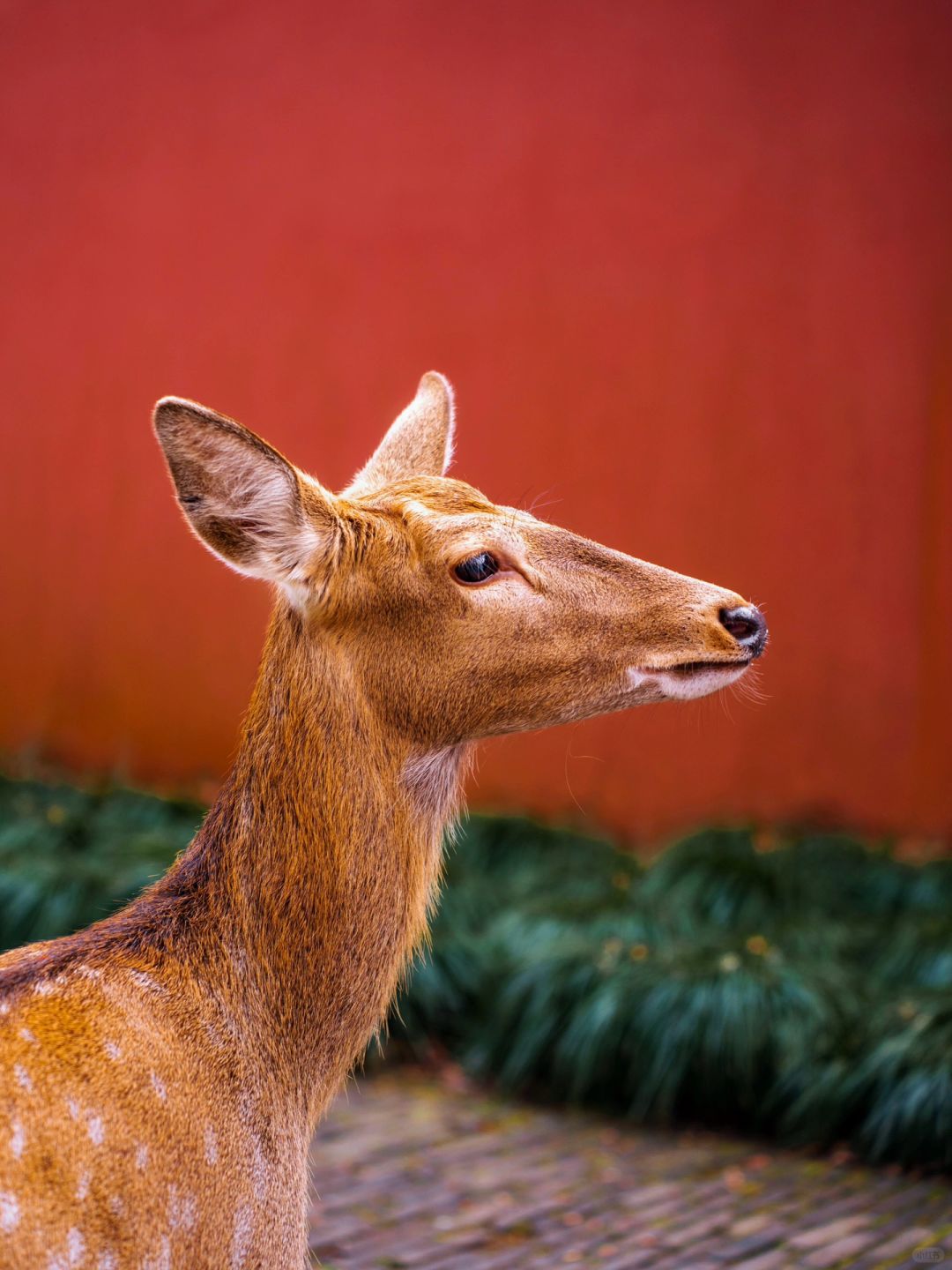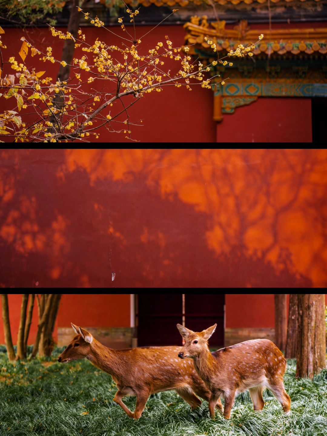 这次运气真的好,红墙腊梅下遇见这两只梅花鹿出来遛弯~