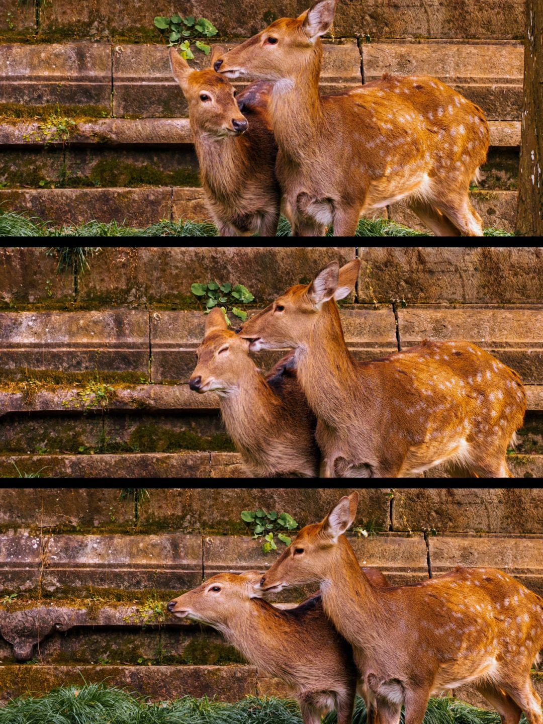 这两只小鹿都比较温顺佛系,近距离可以合照~