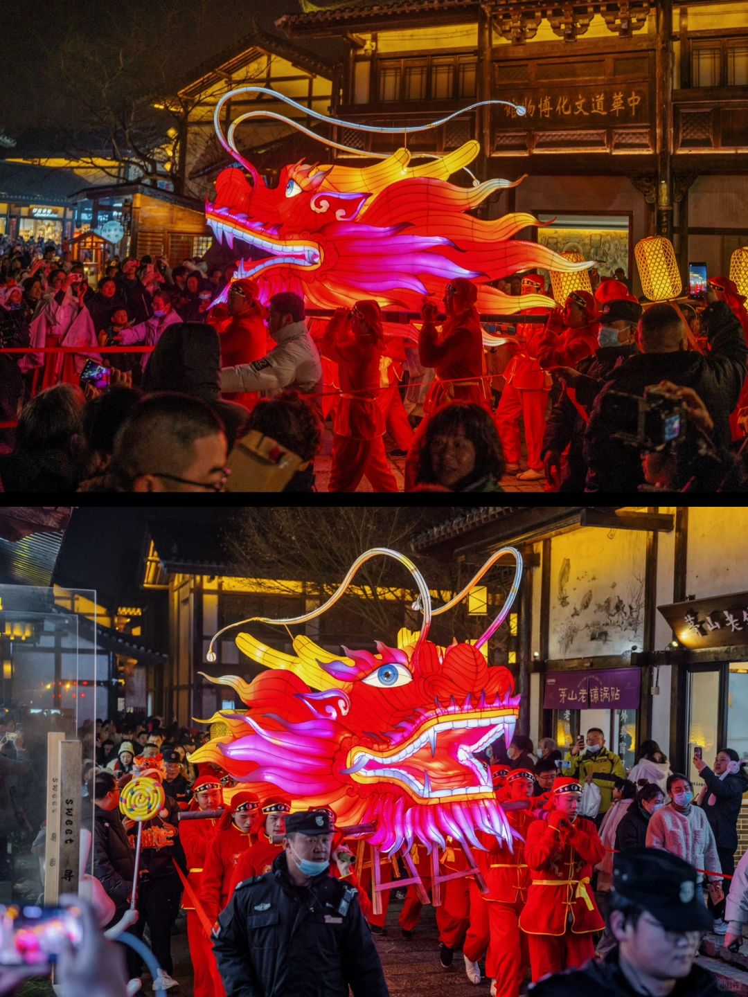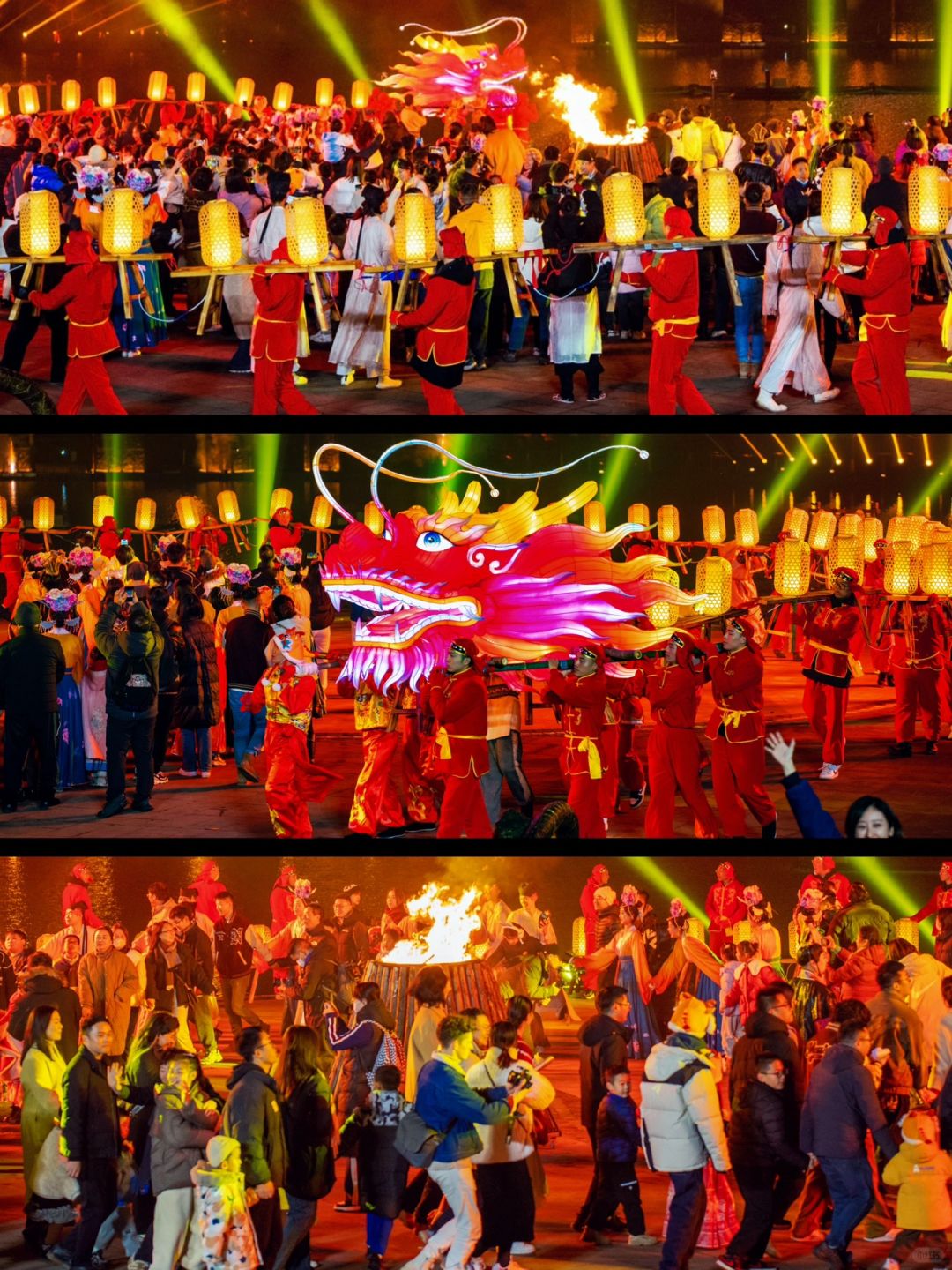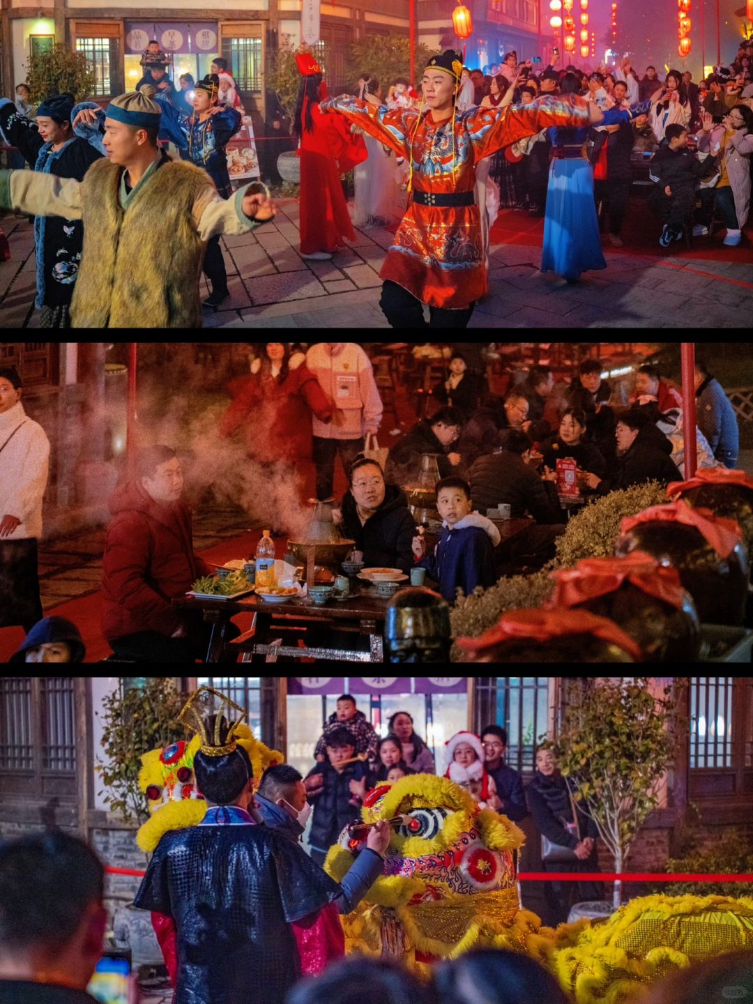 夜幕里灯笼亮起,古风演出接连不断,看龙凤呈祥,赏漫天烟花,吃鸿运千锅宴,造就了盛世魏晋的繁荣景象~太热闹了,这才是我们寻找已久的年味~
