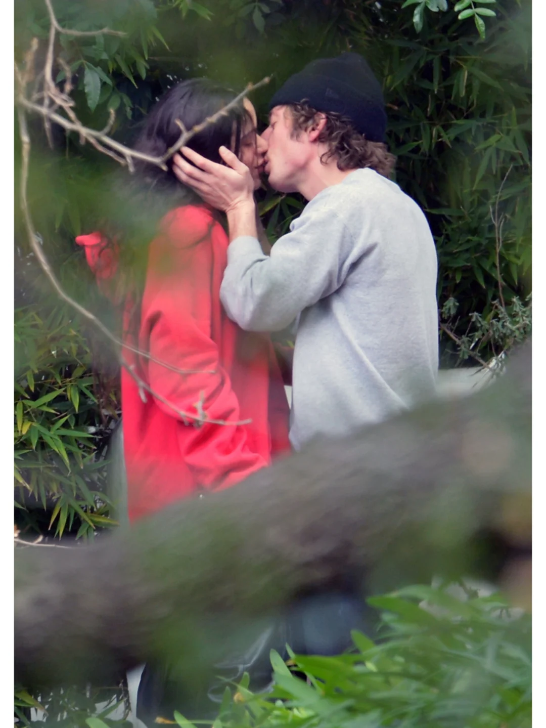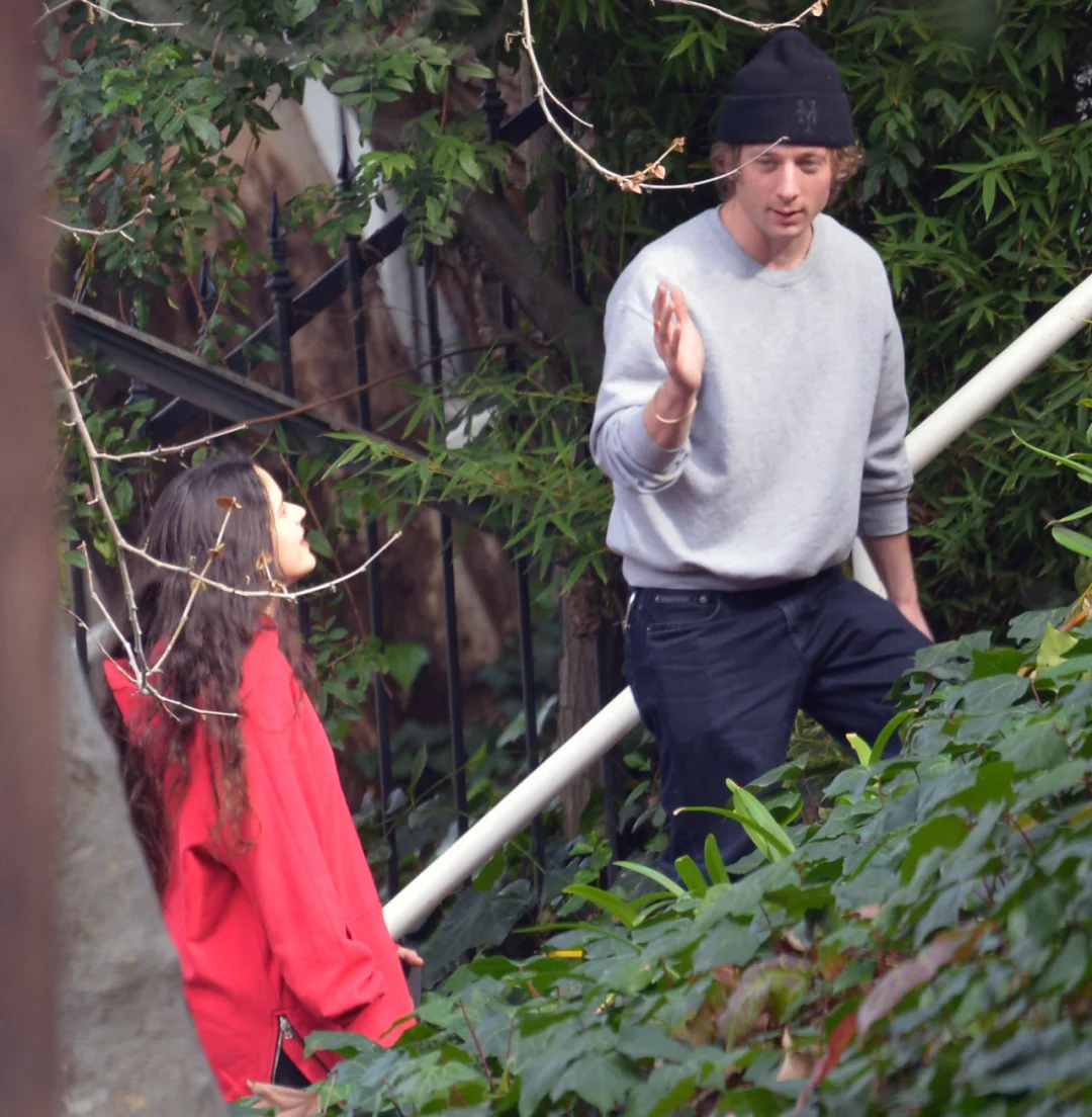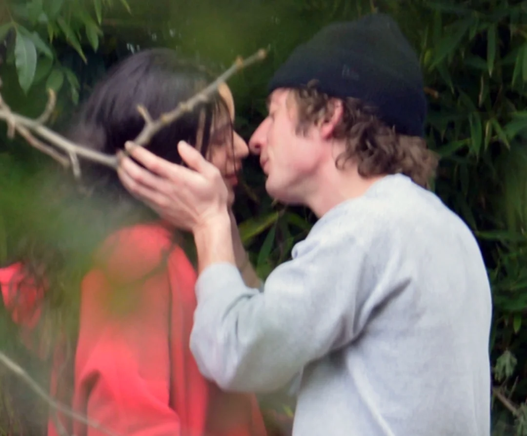两人躲在树林间有树荫遮蔽的阴暗处用双唇紧锁对方的舌头。Jeremy Allen White抚摸着这位西班牙语小天后的脸庞,像是端着一碗随时都会倾斜的水瓶。