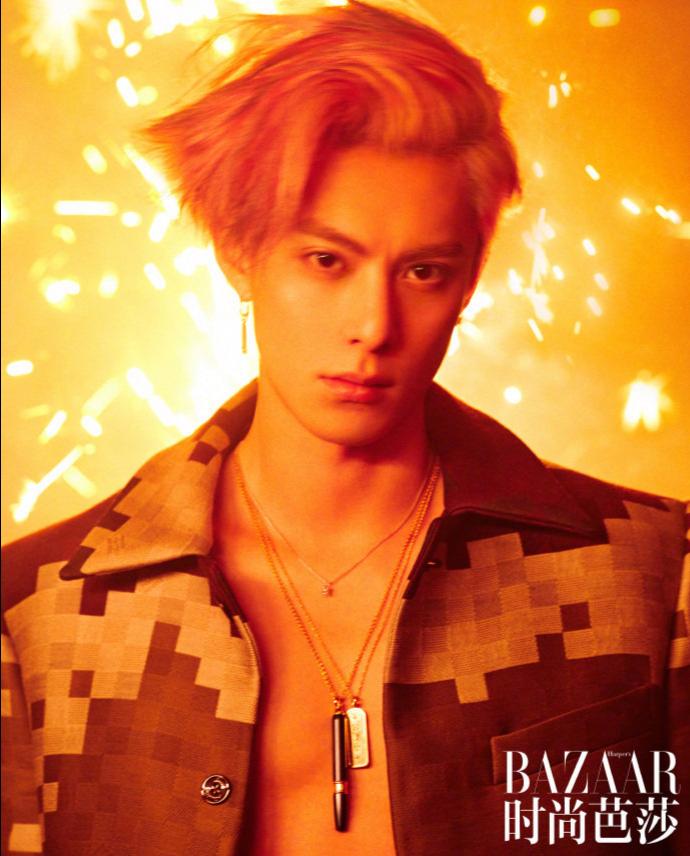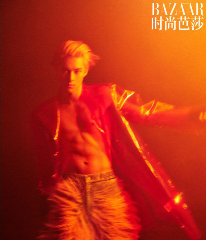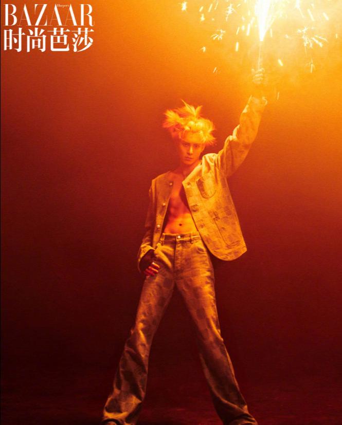 王鹤棣《时尚芭莎》二月刊封面大片!🔥 火焰粉发还有腹肌!2024红火开年!🎉