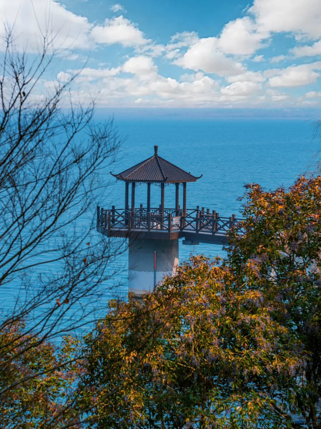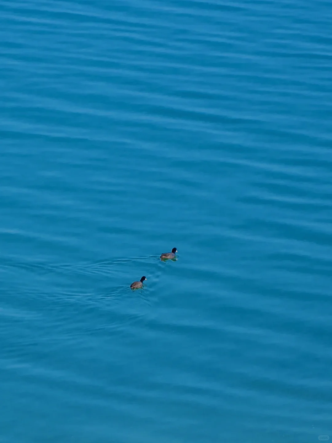 浩淼湖水如同大海般宽阔,水天一色这景象挺美~