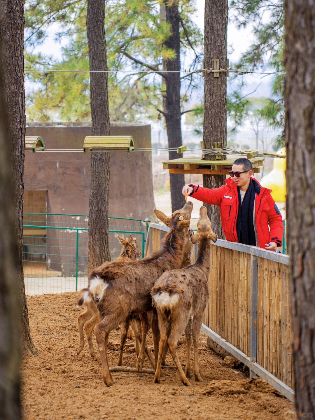 这里以森林为背景,打造冰雪仙境,乘坐“雪国列车”,近距离接触萌宠,体验农家乐,怎么拍都好好看,玩起来也不累~