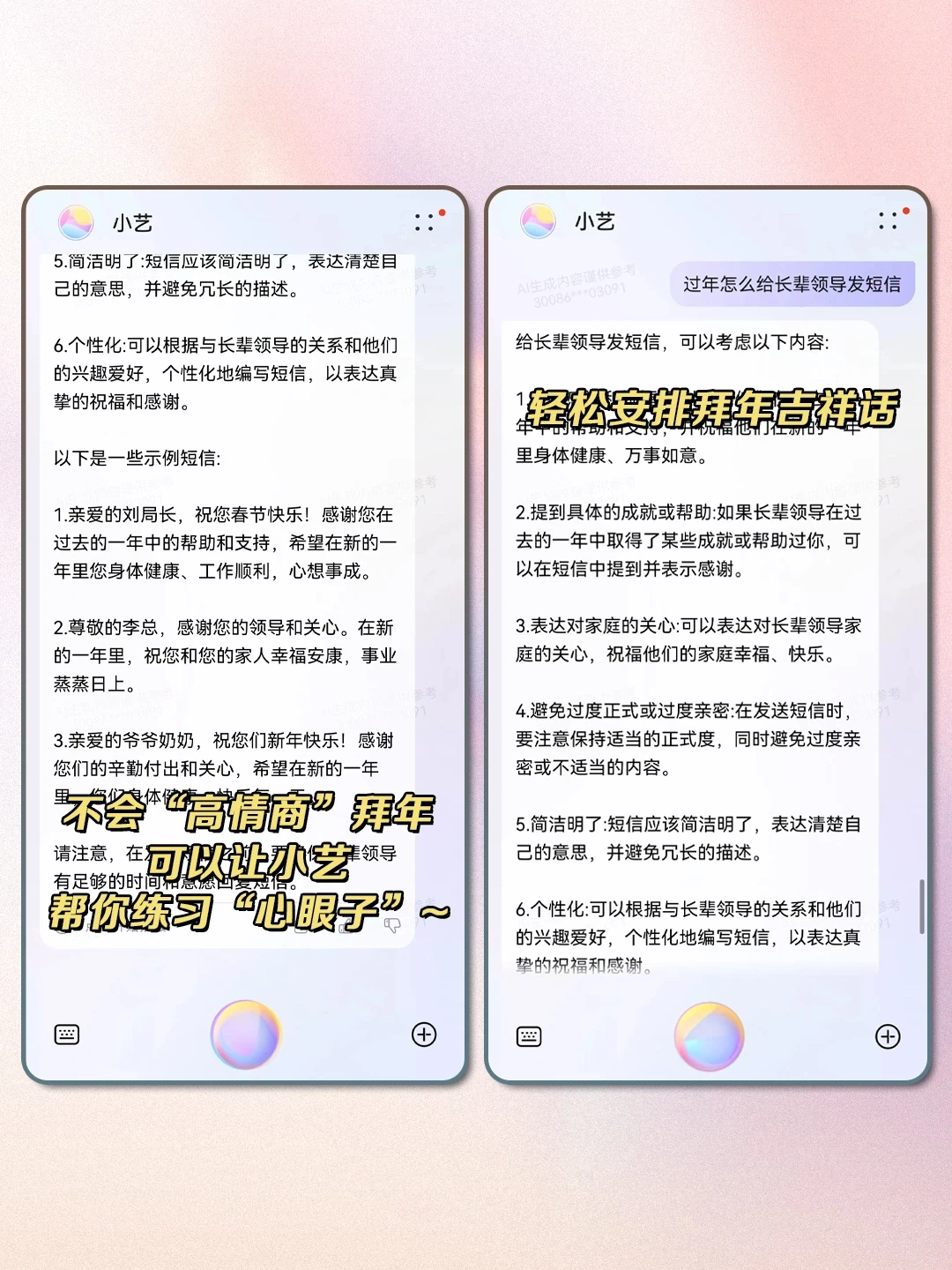 “唤醒小艺”,直接跟小艺说“拜年祝福的句子”,,花式拜年语一整个扑面而来!有了小艺,再也不会给领导写拜年语写到头秃!