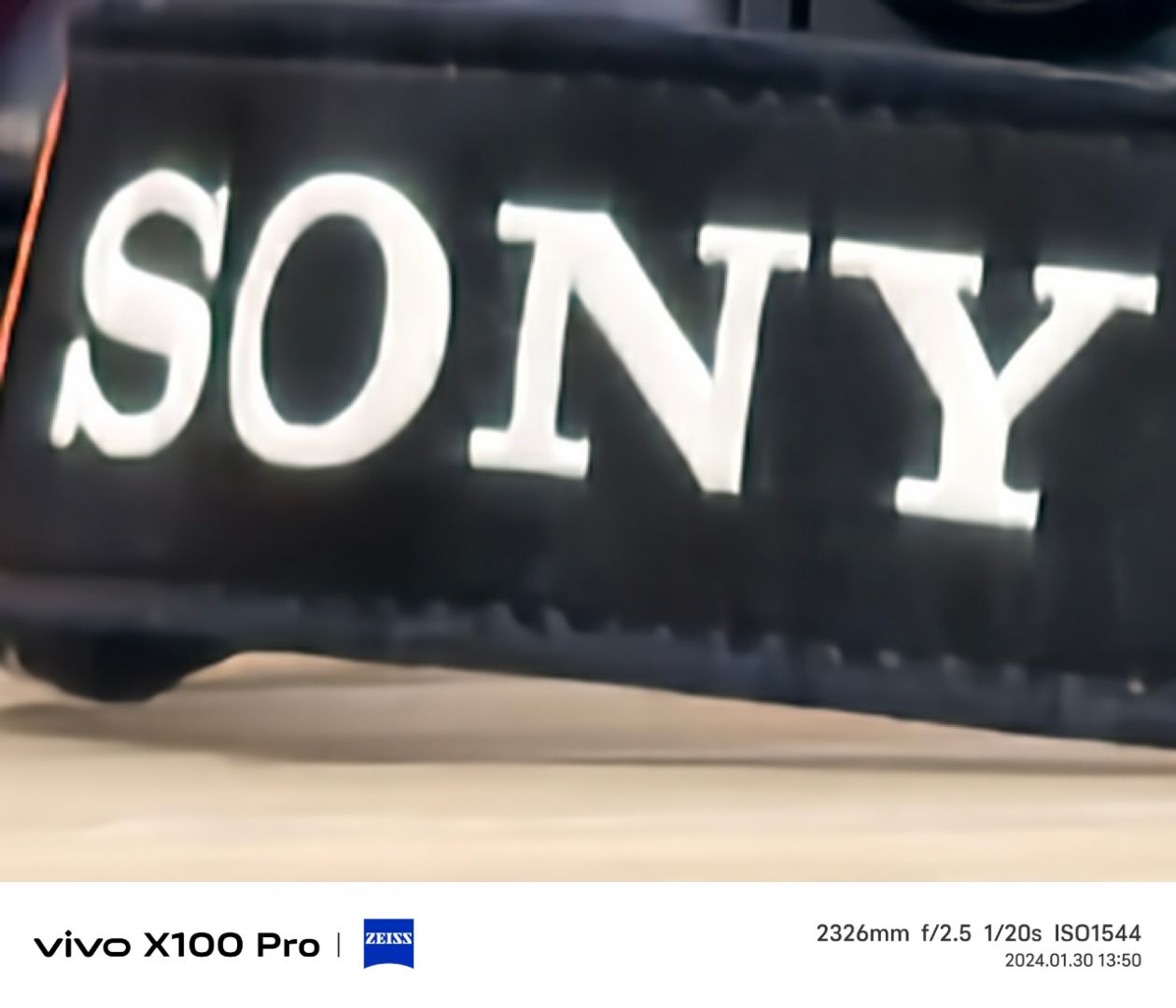 这次测试均为100倍变焦,没有任何参数调整,只看直出哦,拍摄物体为索尼相机肩带。