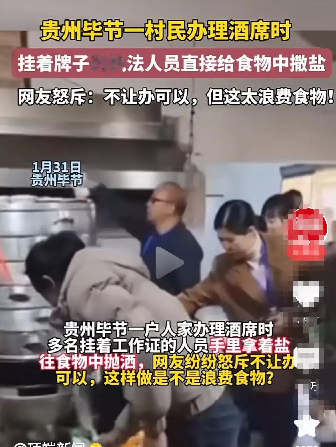 谁规定农民不能办酒席?这几天让贵州毕节办酒席摆桌的人惊着啦!这办了一场”剃头酒”,被人举报,镇领导给那些食物中都撒上盐巴。 咱先不说这“剃头酒”对不对?这镇领导做的也太过火了啊! 这不是嚯嚯东西吗!这是浪费食物,放上这么多盐,这些食物还咋吃呀,这不是妥妥的浪费嘛! 这样子把这些食物都扔掉,还不如让亲朋好友,左邻右舍都吃了。 其实,在农村,孩子结婚、坐月子,小孩考上大学、亲戚朋友聚会上几桌,这无可厚非。 娶媳妇喝喜酒,这是中国人的传统文化,基本全国各地结婚都吃席。 就是村里有红白喜事的办酒席,我觉得很正常,这么多年都这样子,没有人管着不让办。 谁家不娶媳妇,谁家不办白事。 我觉得这没有什么不妥。 当然,必须本着不铺张,不浪费的原则。 我们这边基本就是红白喜事,生孩子坐月子,现在又多了一个升学宴,其他没有。 我不知道这“剃头宴”是什么酒? 剃个头都要请朋友吃饭? 这请客吃饭是人之常情,不知道这什么时候偶尔聚餐也违法乱纪了? 那是不是去饭店吃就不违法了? 但是,我觉得这镇长不问青红皂白的就往食物撒盐,这个行为是错误的,这不明显欺负人吗?