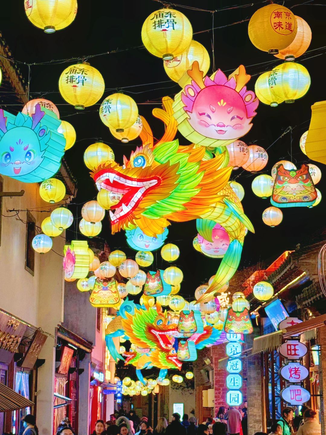 秦淮灯会的主会场就在这,以明代国宝级画作《上元灯彩图》为主题,园内设置了68组大小形态各异的主题灯彩,绚烂的灯光与漫天星河交相辉映,呈现一场叹为观止的视觉盛宴~
