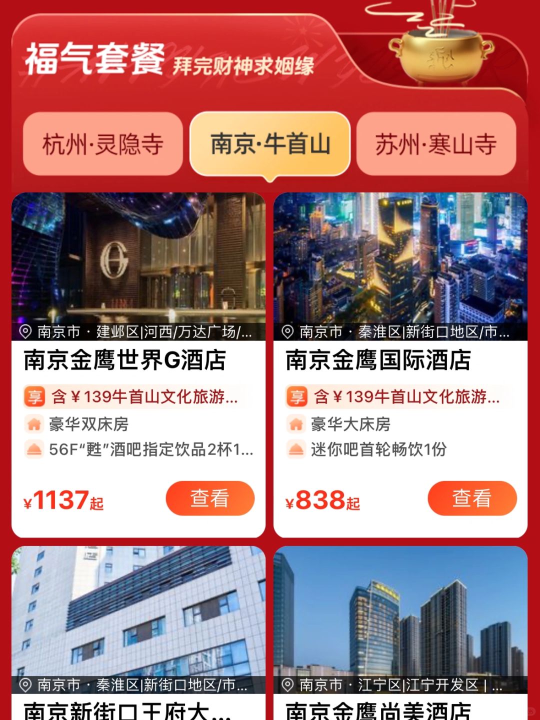 想要来祈福的,就可以直接预订牛首山门票➕酒店套餐,非常划算!另外还有210元春节🧧,先领再说!!
