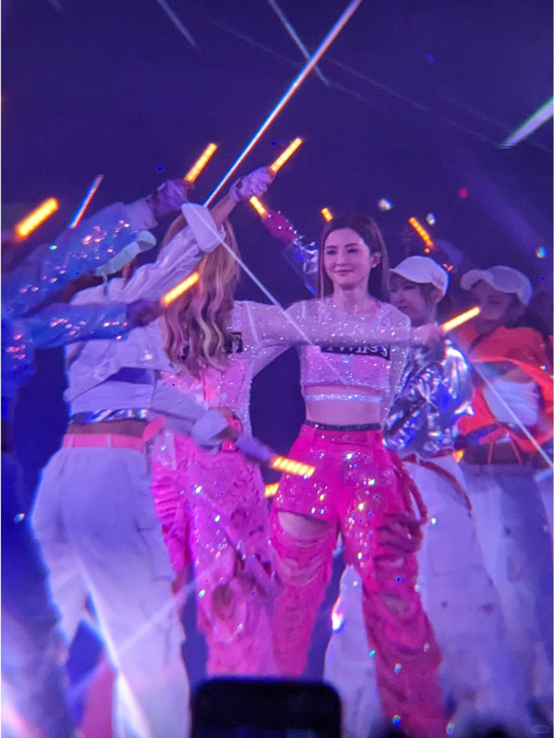 Twins很卖力,一登台身穿粉红色战衣热唱《明爱暗恋补习社》和《二人世界杯》等快歌串烧,唱完《跅跅步哈姆太郎》她们有一个ending pose,歌迷说原本要做的动作是侧手翻,前几天阿娇贫血摔倒所以现在改成另一个动作了。虽然没看到Twins招牌的侧手翻,但阿娇身体不适还唱了这么多场真的很卖力。原来只要明星有艺德,就算身体不适还是可以上场的呢。