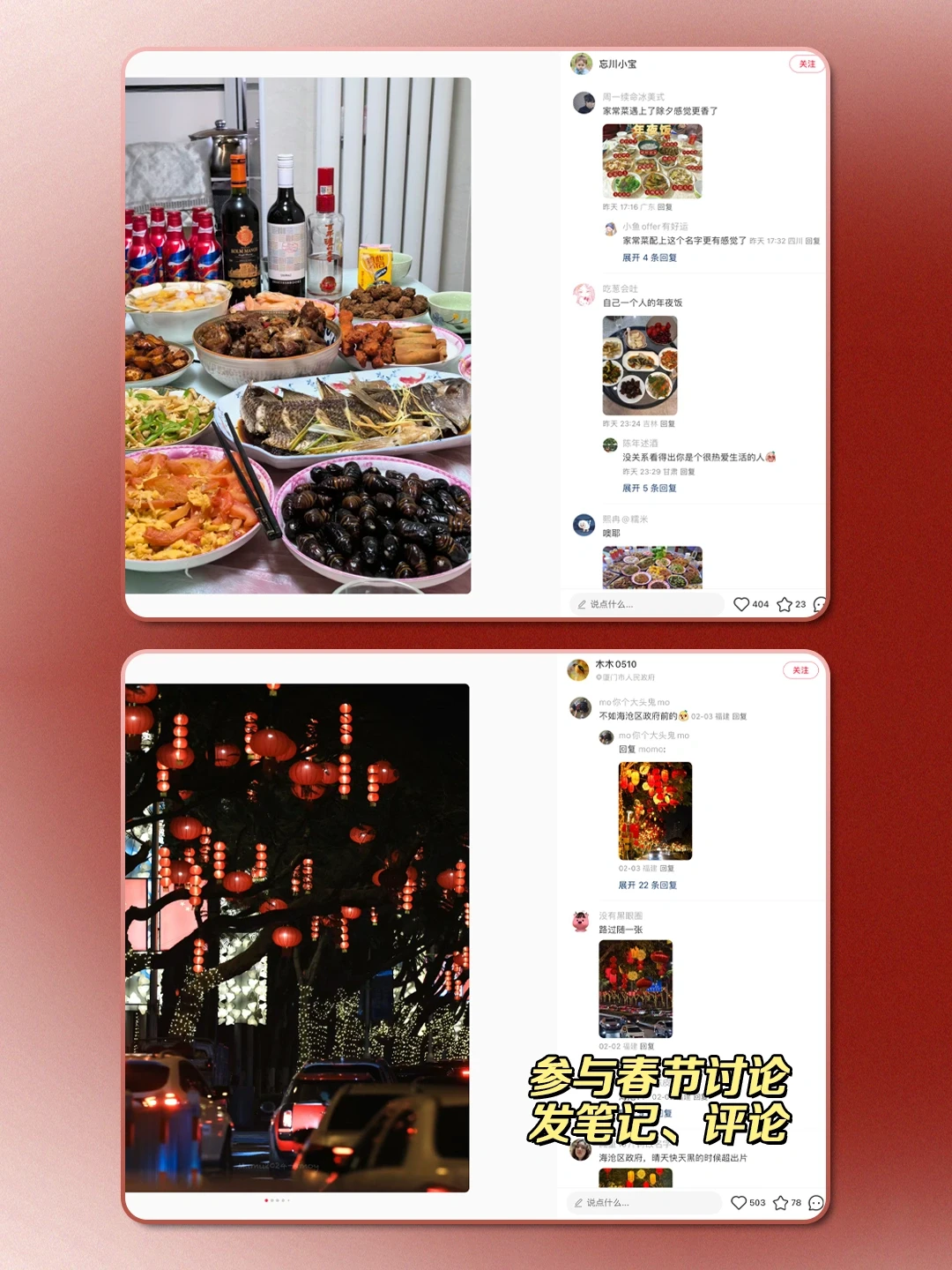 参与春节讨论,发笔记、评论啥的,都有机会随机抽取送出的春节礼物吼!千万别错过啦!
