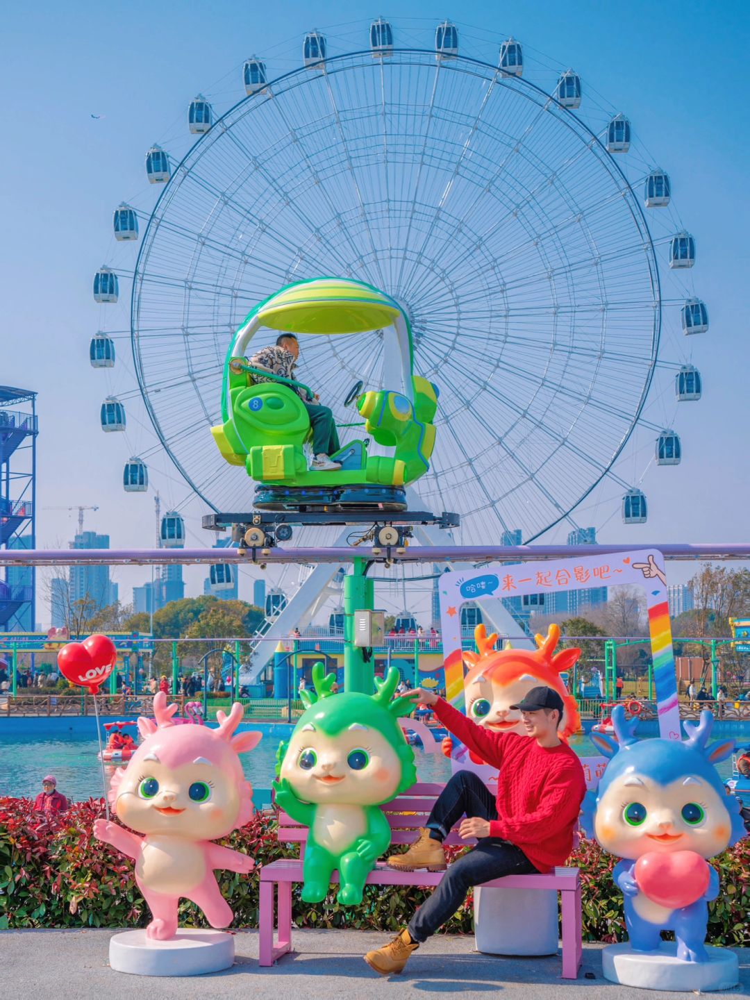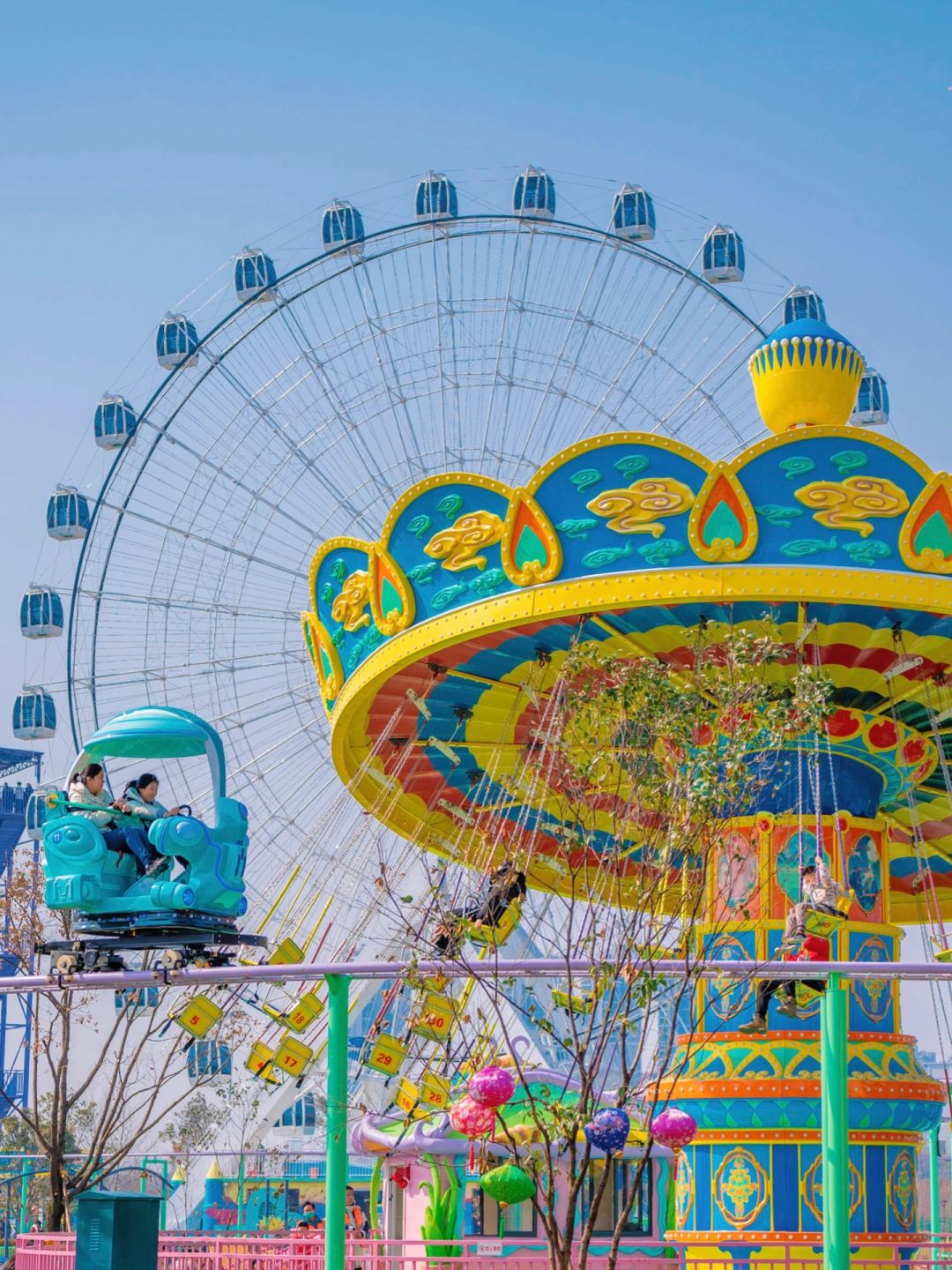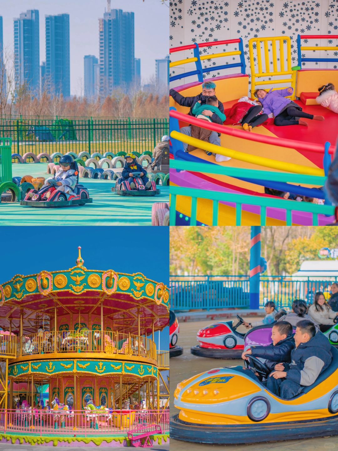 现已有一处3万平的儿童游乐园🎢,有水滑道、浪漫摩天轮、碰碰车、双层旋转木马、过山车、小火车、划船…可玩的项目蛮多,而且有好多大片草地可露营,这下不用跑去郊外也可在这遛娃一整天,当然也可以遛狗~