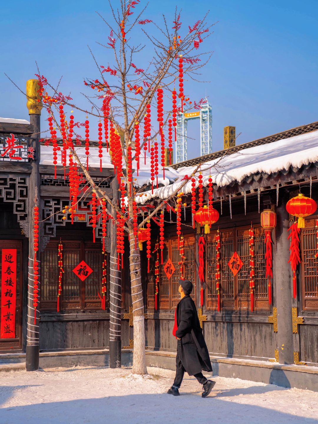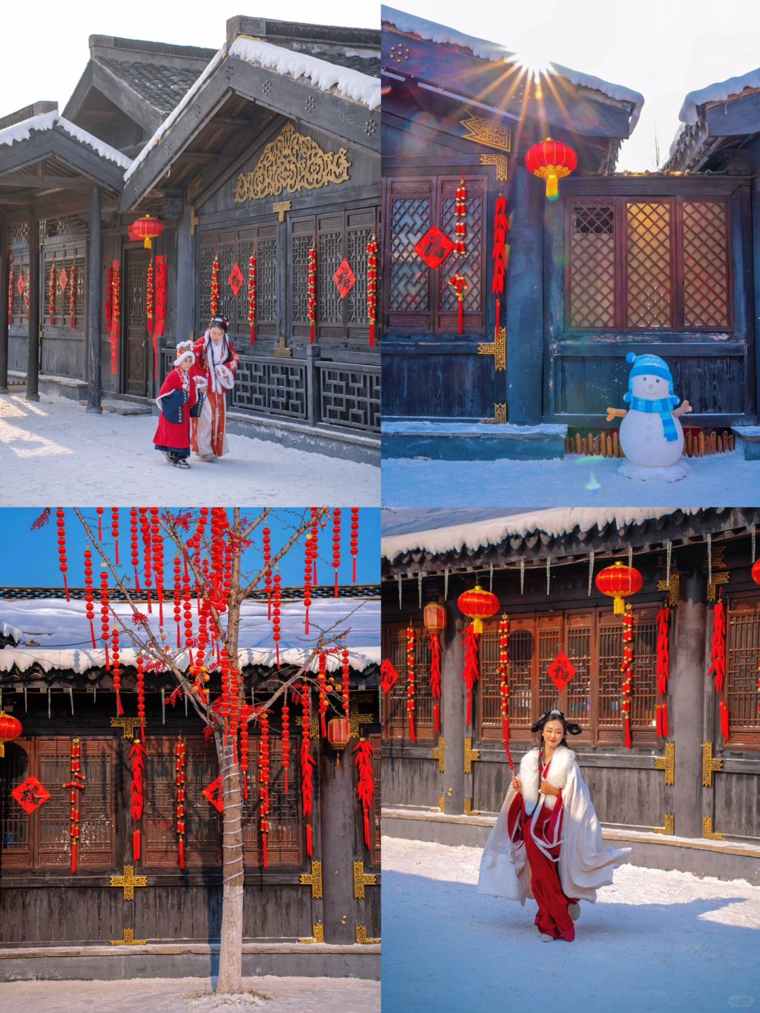 雪巷白雪造景全覆盖,处处都披红挂红灯笼贴对联,张灯结彩、喜气洋洋~