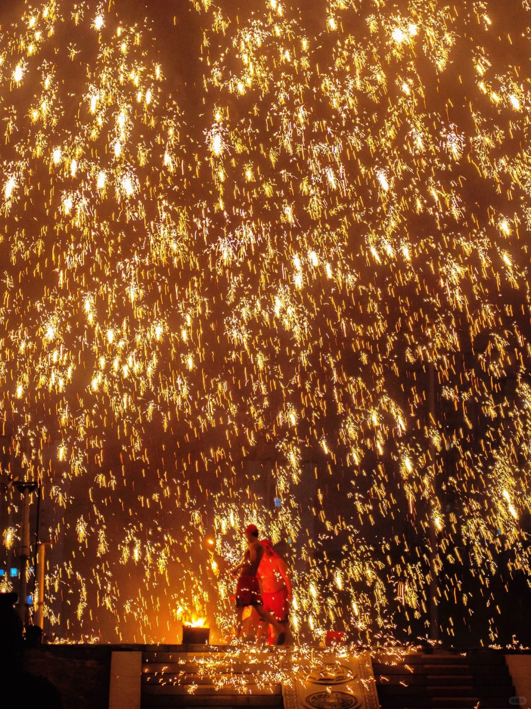 打铁花是流传于豫晋地区的大型民间传统烟火,已有千余年的历史~