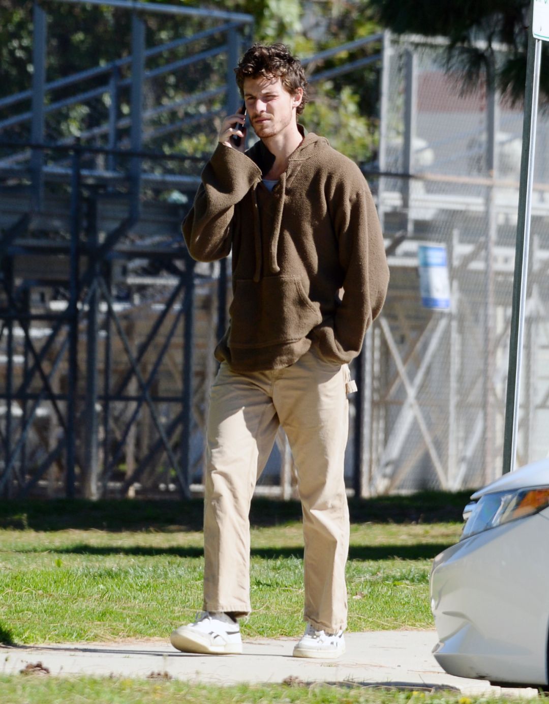 Shawn Mendes以其恪守健康生活方式和积极参与运动闻名。这天刚来到球场,萌德还十分客套地穿了一件茶色外套。