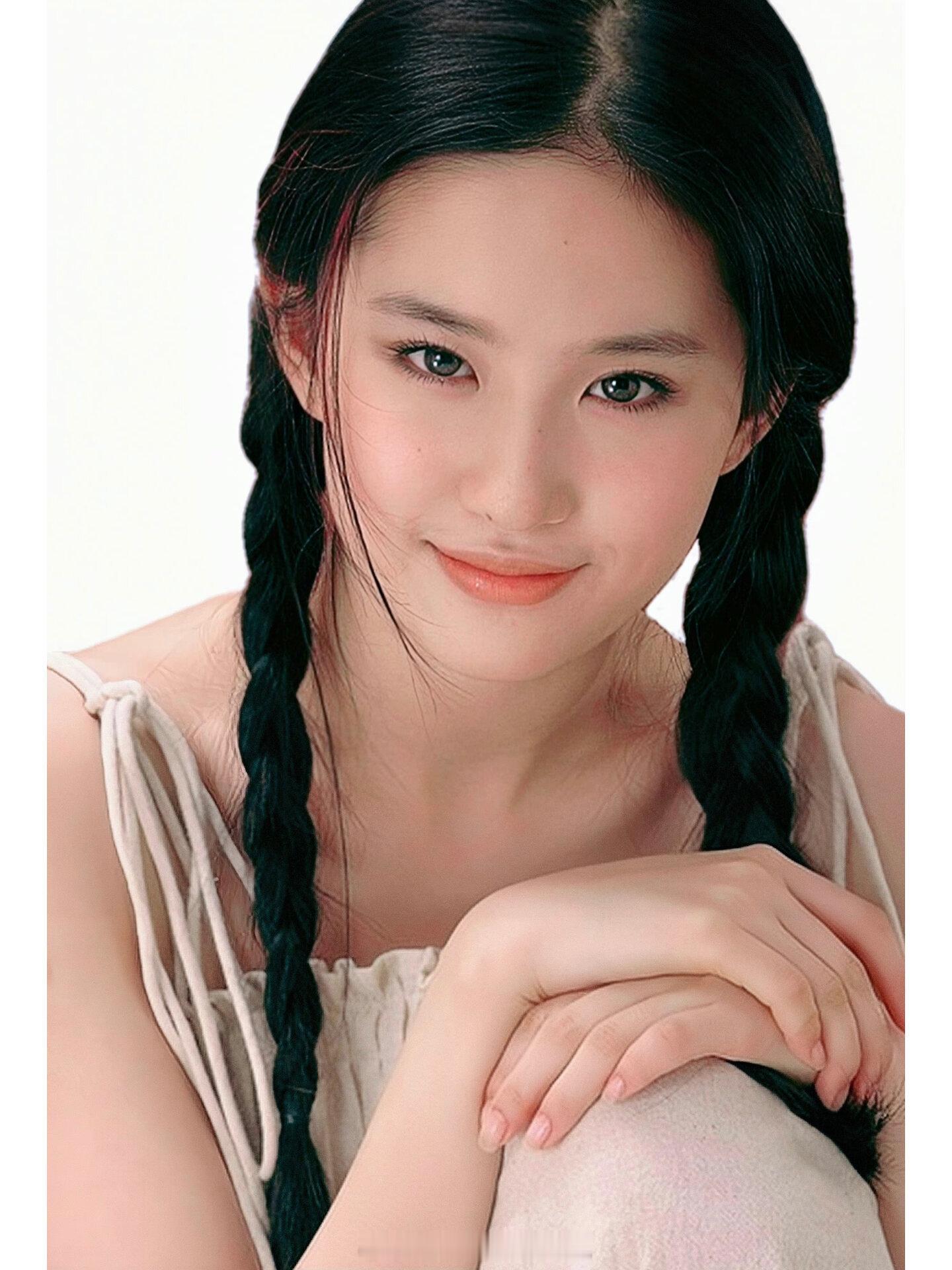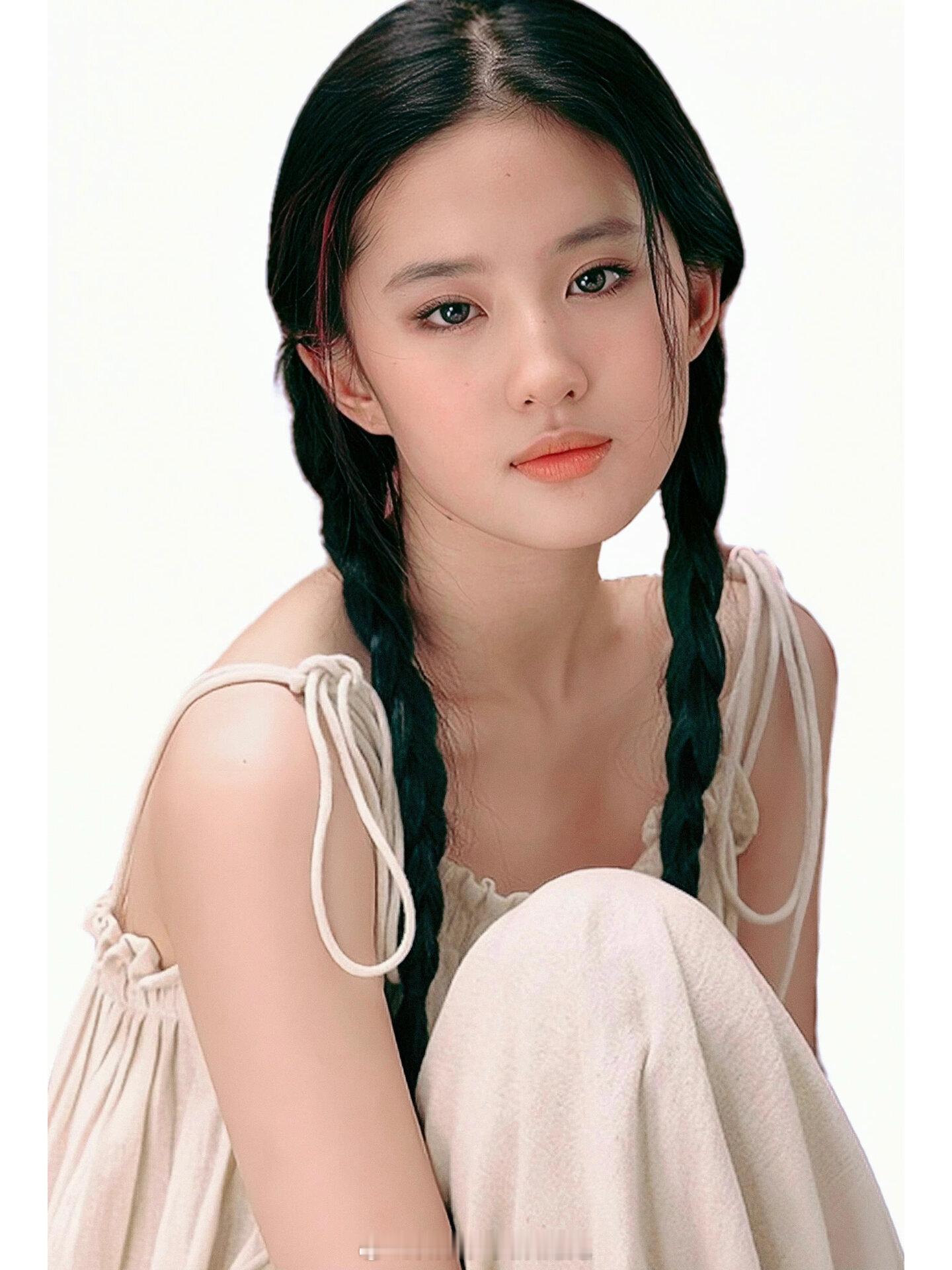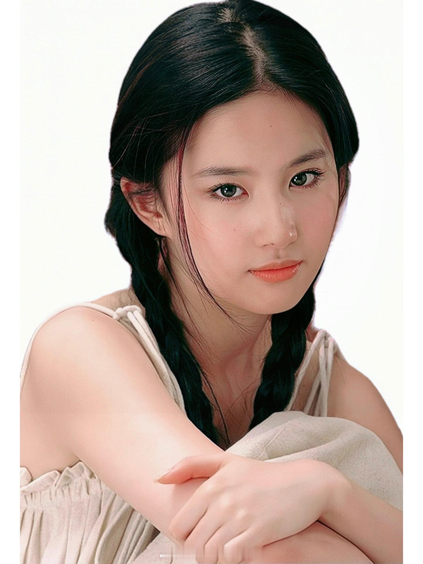 #刘亦菲白色吊带裙#刘亦菲05年写真!麻花辫白色吊带裙灵气逼人!爱了爱了