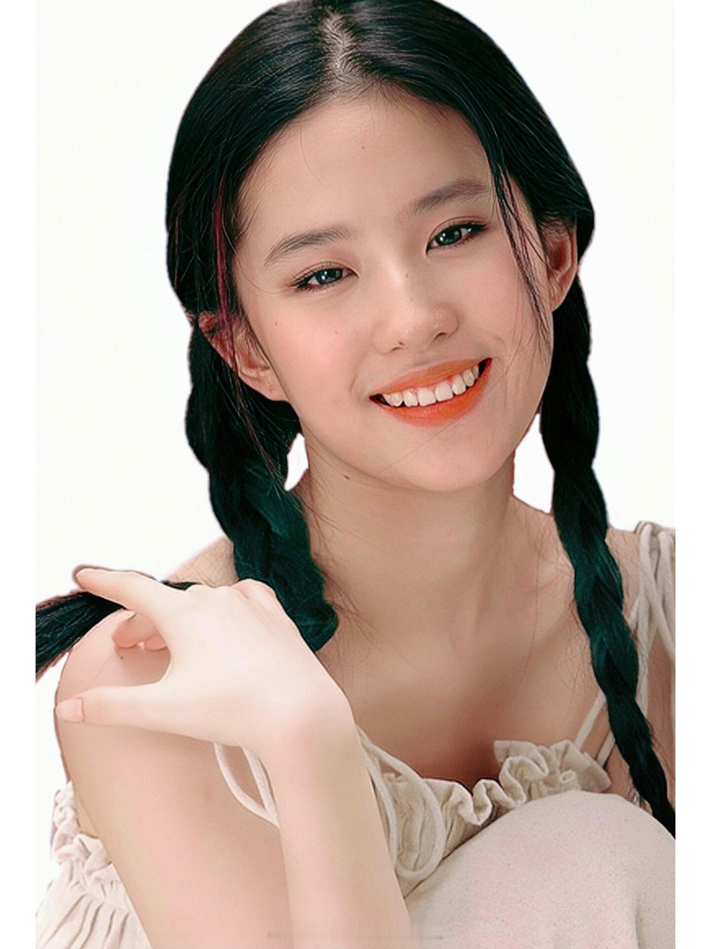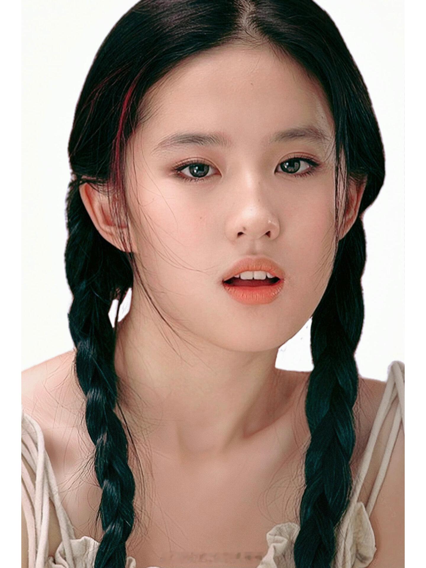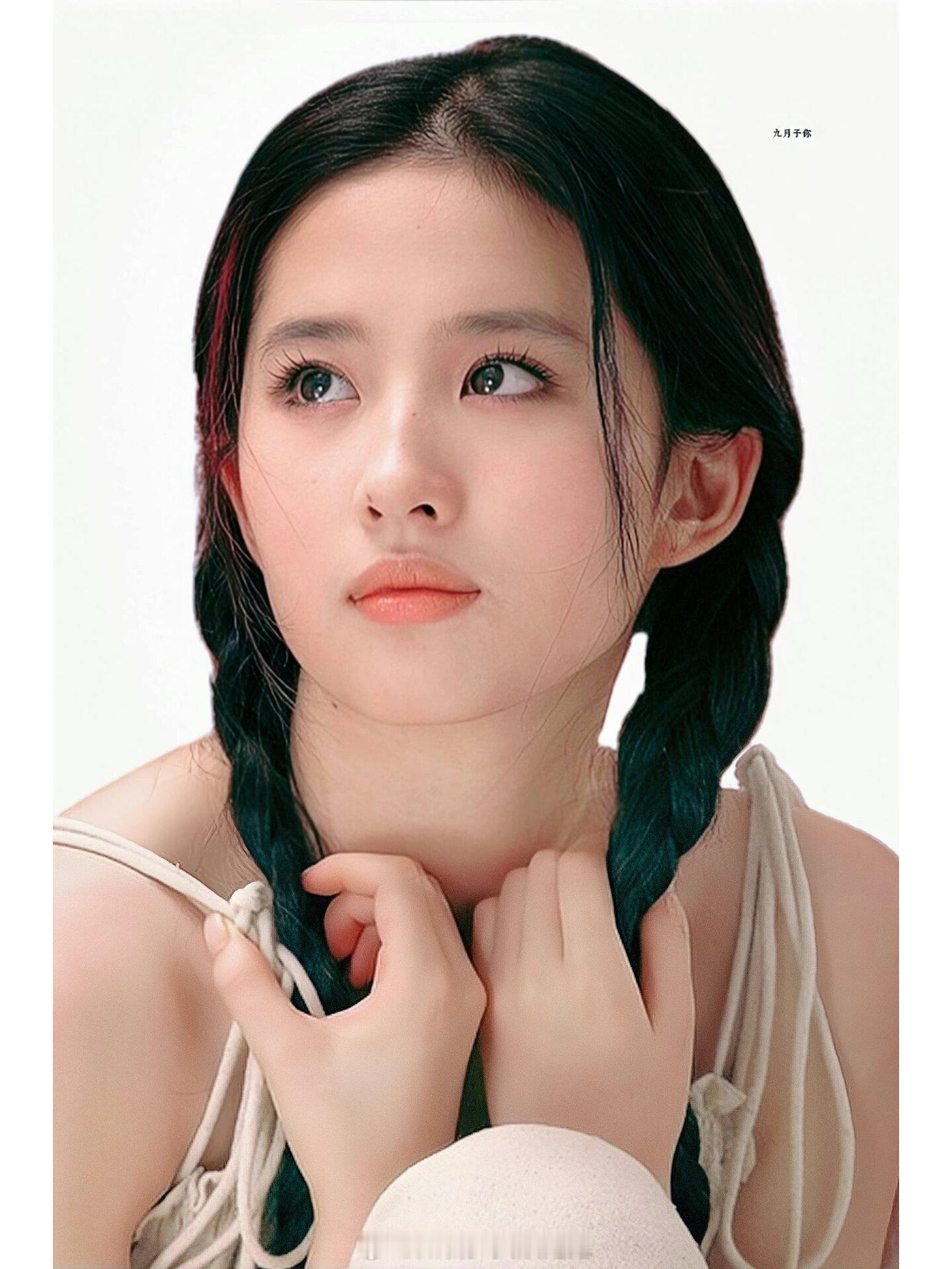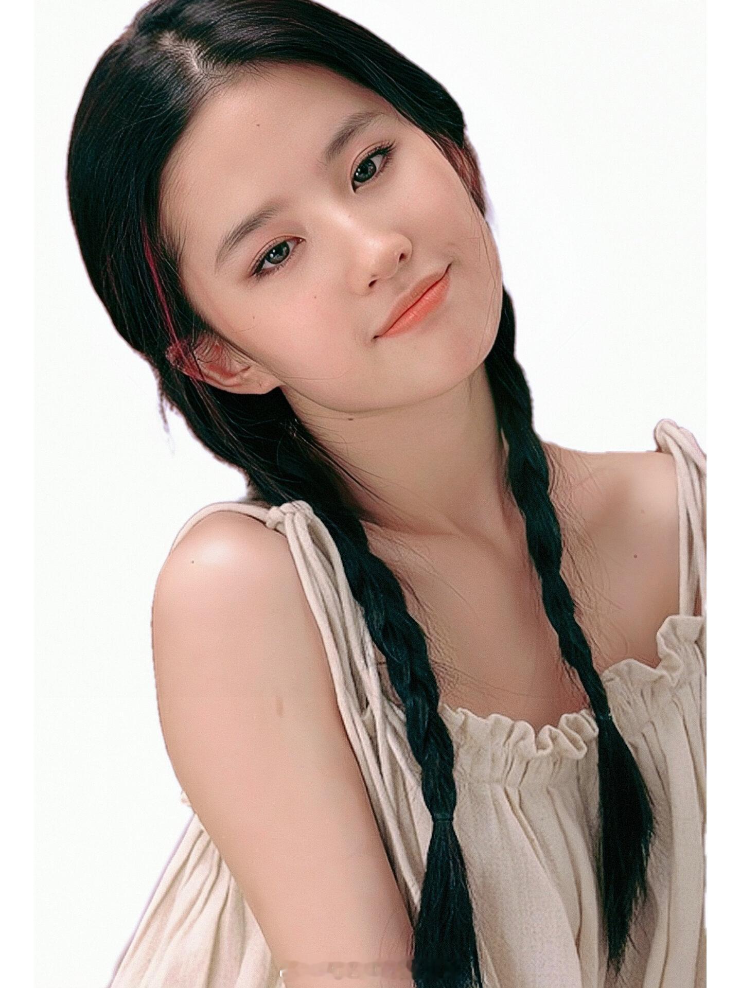 #刘亦菲白色吊带裙#刘亦菲05年写真!麻花辫白色吊带裙灵气逼人!爱了爱了