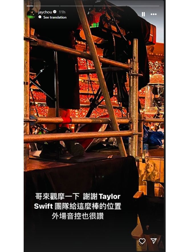 周杰伦在ig上晒霉霉Taylor Swift给他预留的公关票座位,隐隐约约阴阳了一下霉霉。