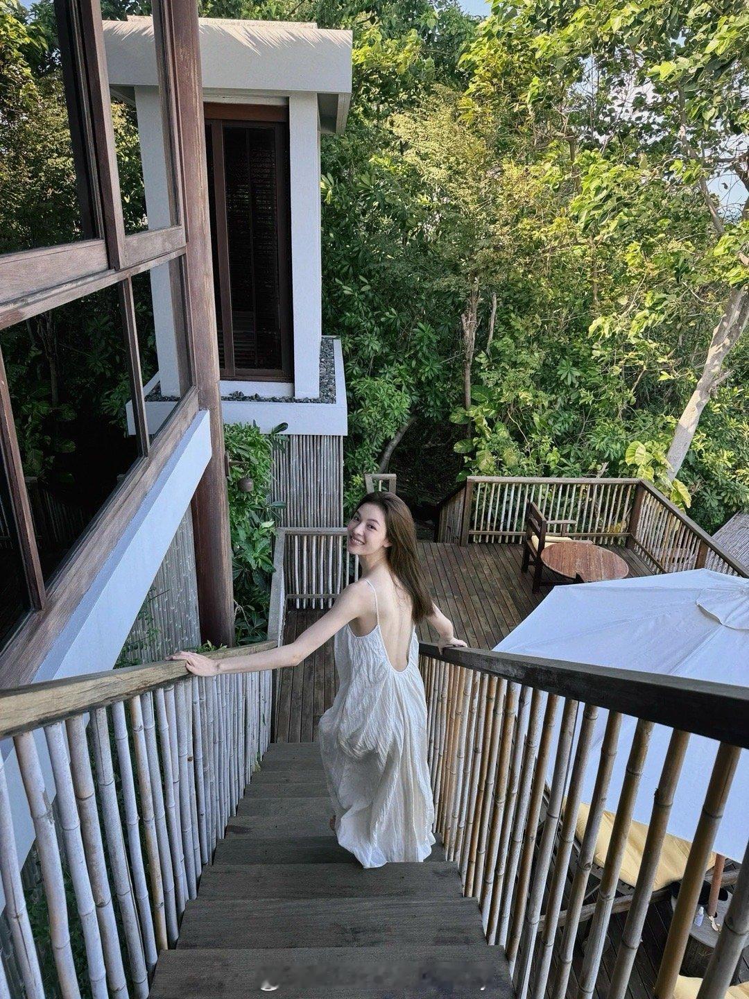 钟楚曦泰国度假⛱️美照释出,白裙翩翩为整体look加分~