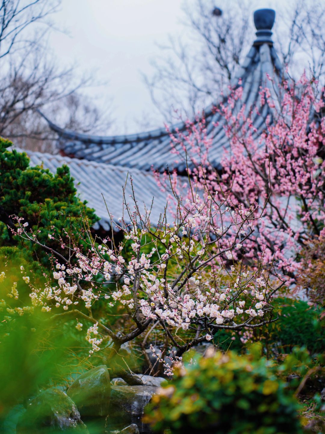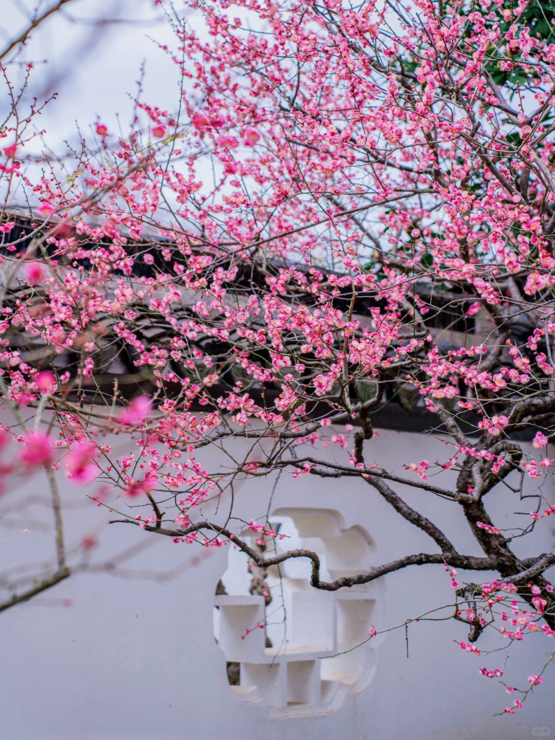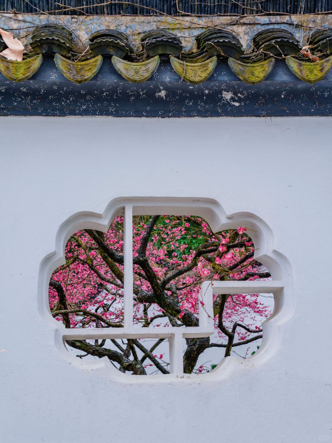 据说那是按《红楼梦》前八十回中zui精彩的章回为意境打造出来的江南古典园林,梅花种植相对较为分散~曲廊飞檐,洞门花窗,白墙黛瓦,梅景如画,一步一景,怎么拍都好好看~